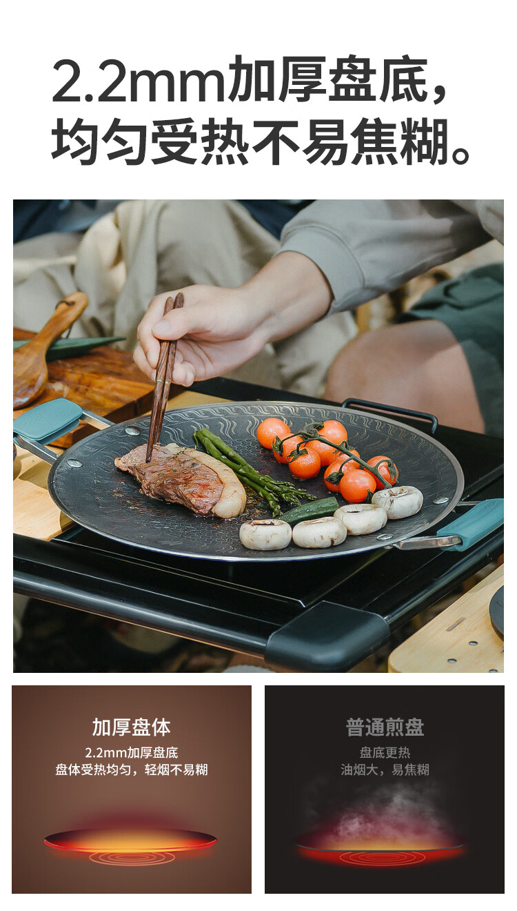 火枫户外装备露营野营自驾游家用圆形电陶炉烧烤肉盘不沾涂层 百味煎烤盘玛瑙灰