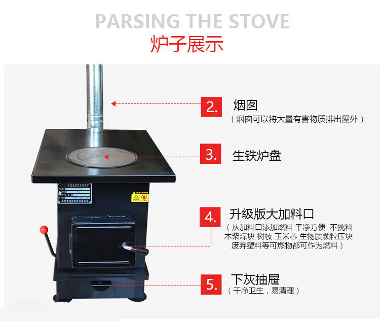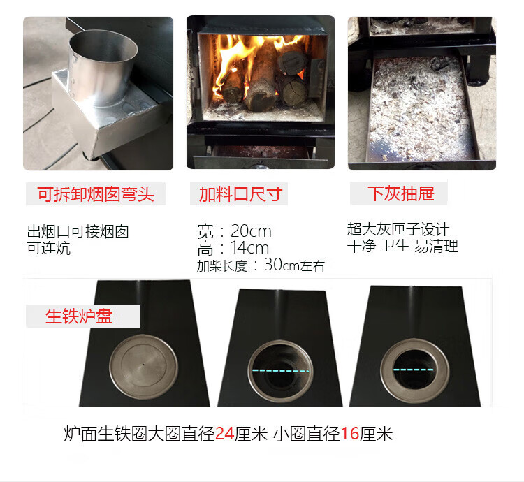 玮贤精品柴煤两用柴火炉灶铸铁内胆二次进气移动家用加厚无烟汽化炉 固定底座通炕款