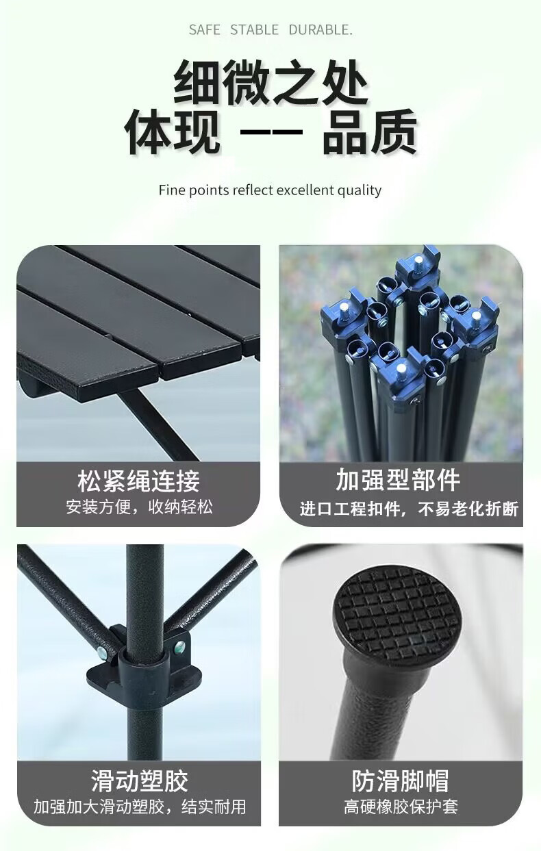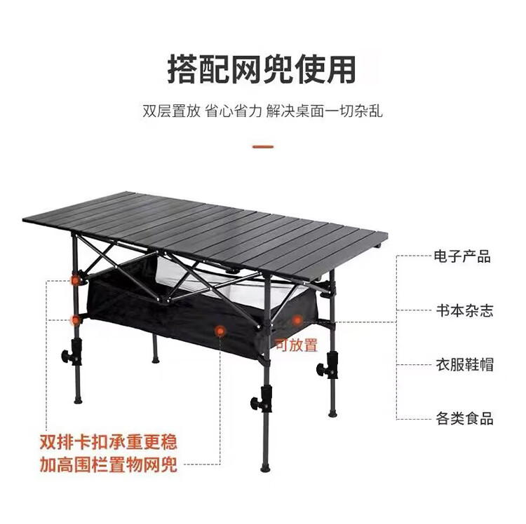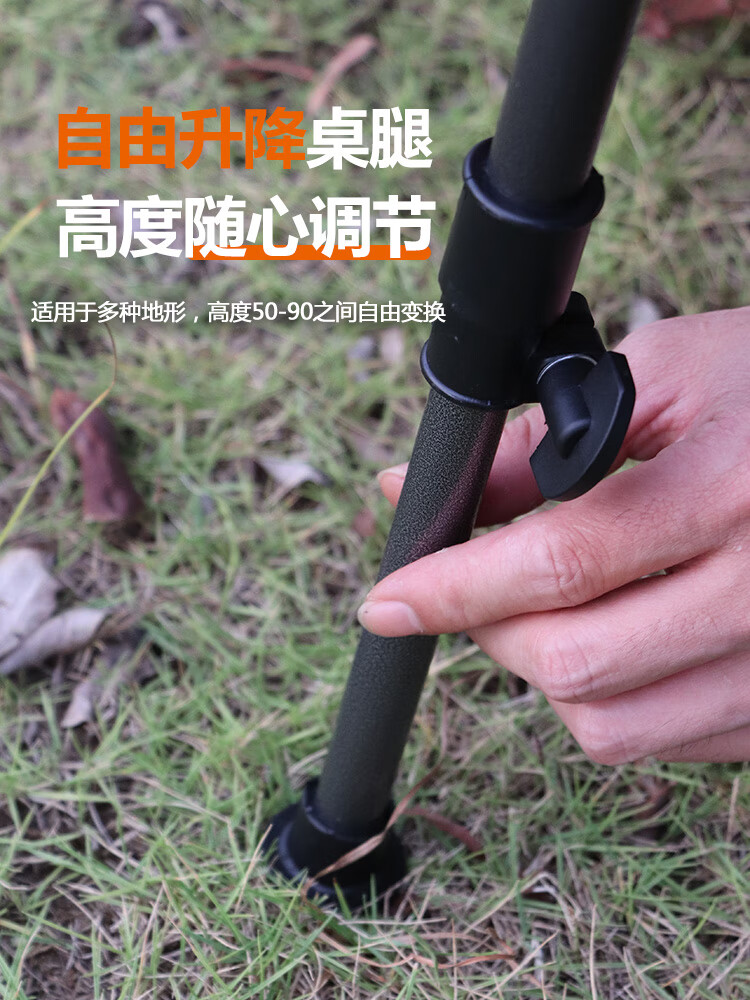 京噶户外可折叠升降摆摊蛋卷桌椅套装露营推车钓鱼桌腿野餐一桌四椅 方形黑色可升降折叠桌(收纳袋)