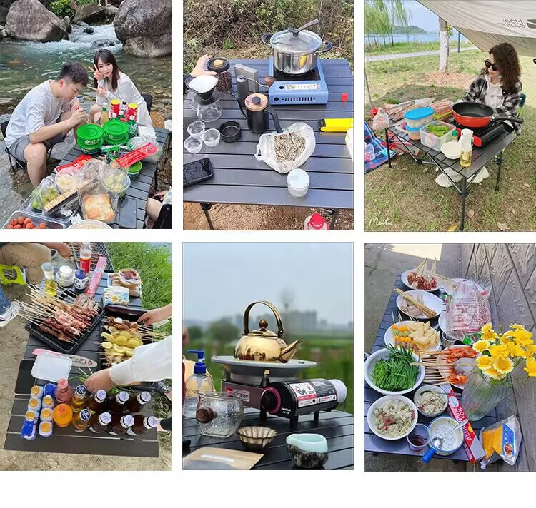 Guide Series户外铝合金折叠桌露营桌便携升降沙滩烧烤桌加宽桌自驾游车载桌 新 加宽金属 木纹黑色
