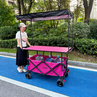 大号露营车摆摊车夜市小推车升降桌柠檬茶餐车营地野餐车聚拢折叠 车(粉)+120*60粉色桌+顶棚(黑)