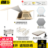 探险者帐篷户外露营便携天幕帐篷速开加厚黑胶防雨防晒野营装备 六角帐篷+天幕4-6+推车+桌椅+床