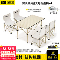 探险者露营桌户外桌椅套装折叠桌便携野餐桌蛋卷桌一桌四椅野营装备全套 珠光白加长桌+超大号折叠椅*4