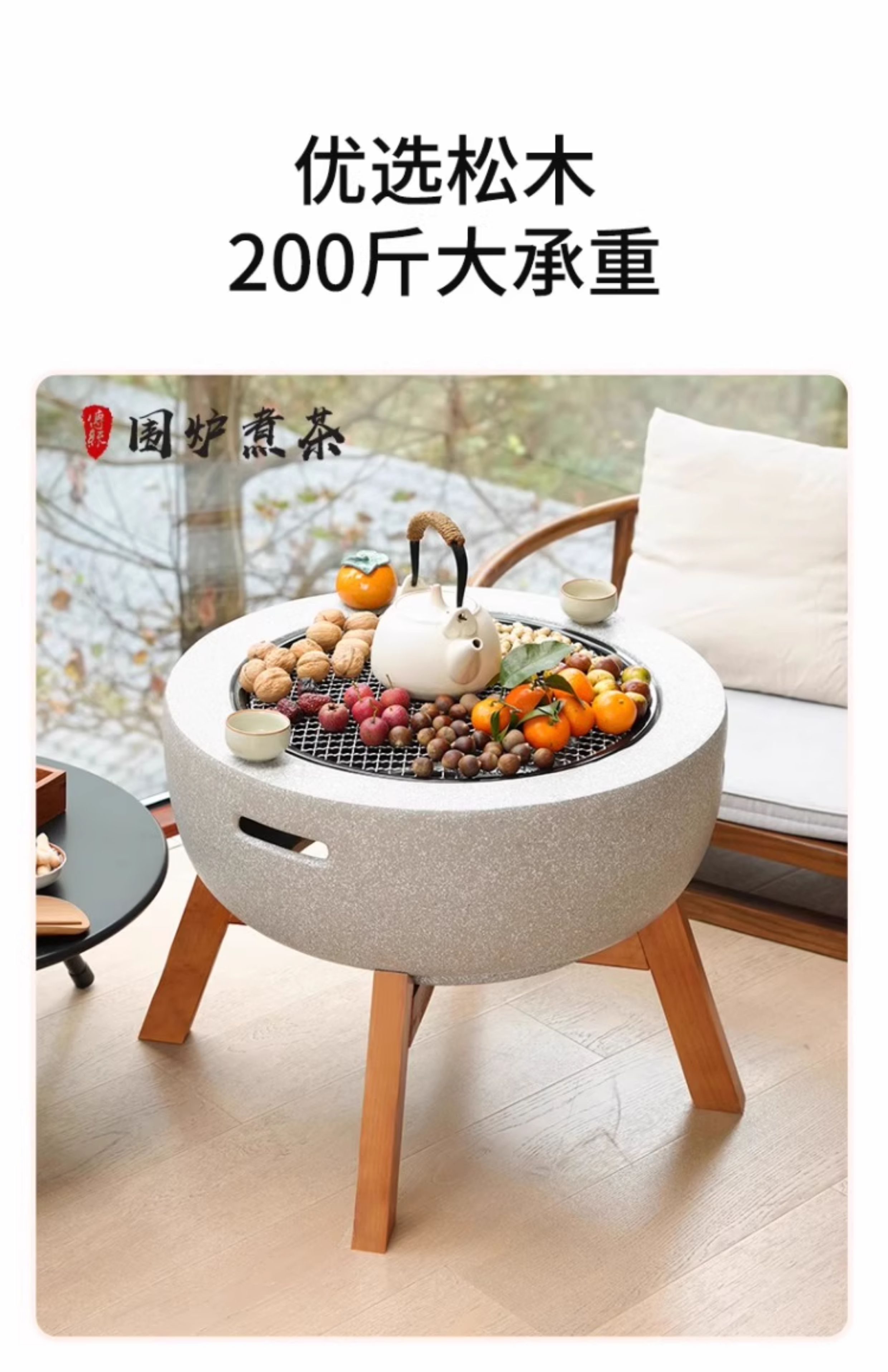 洛摩鼎加高木架铁架围炉煮茶烧烤火炉配件增高脚架配套木架 60围炉木架