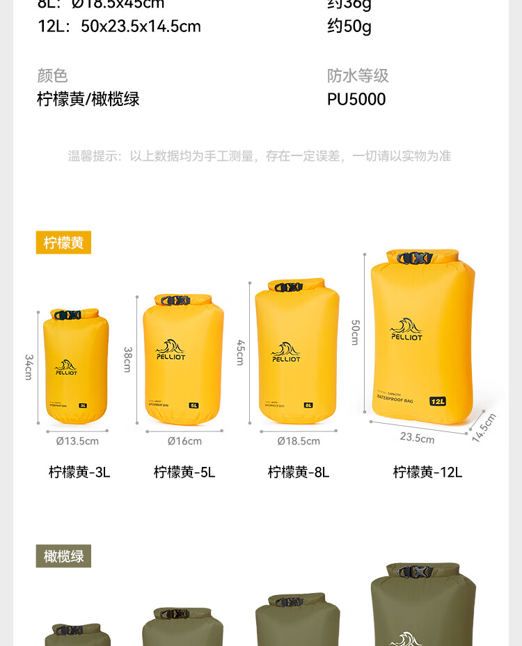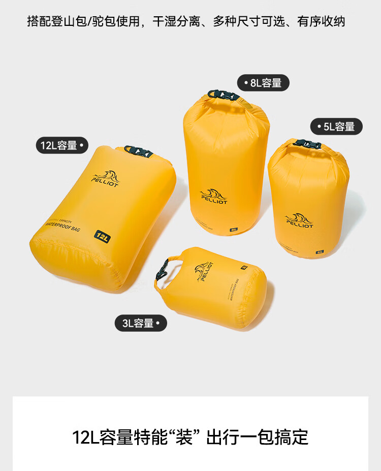 伯希和伯希和户外防水袋便携登山游泳轻量卷口收纳分装压缩漂流溯溪包 【橄榄绿】3L 防水耐磨 轻量便携
