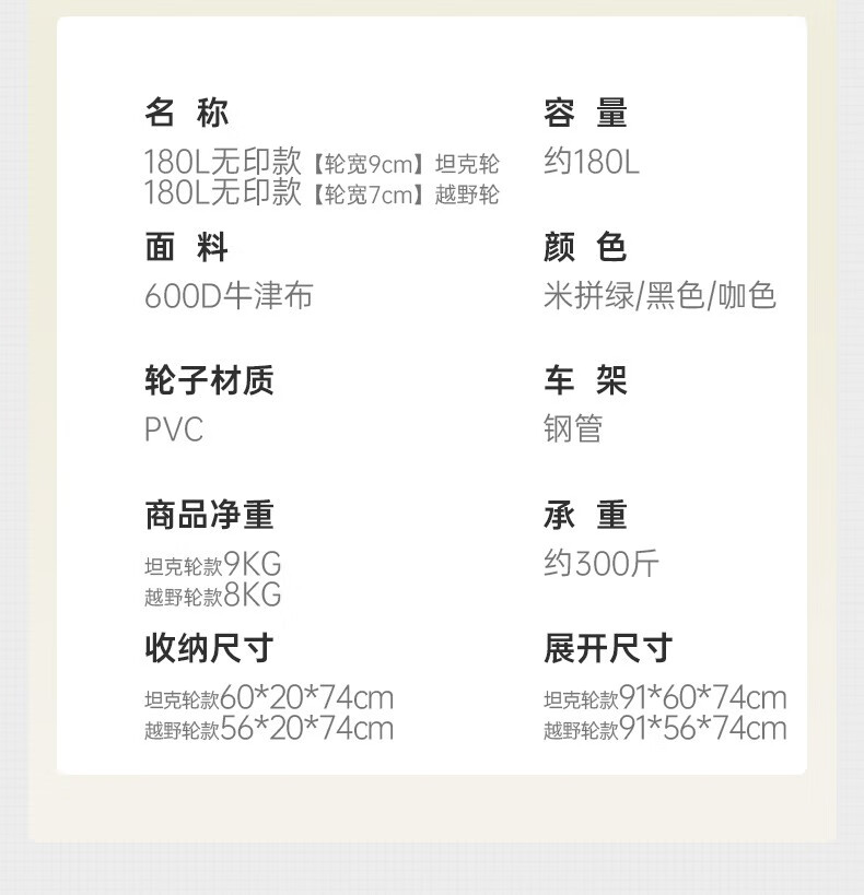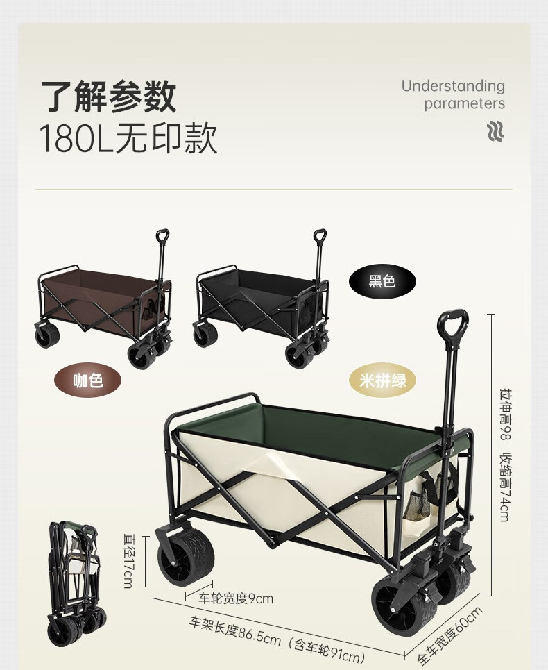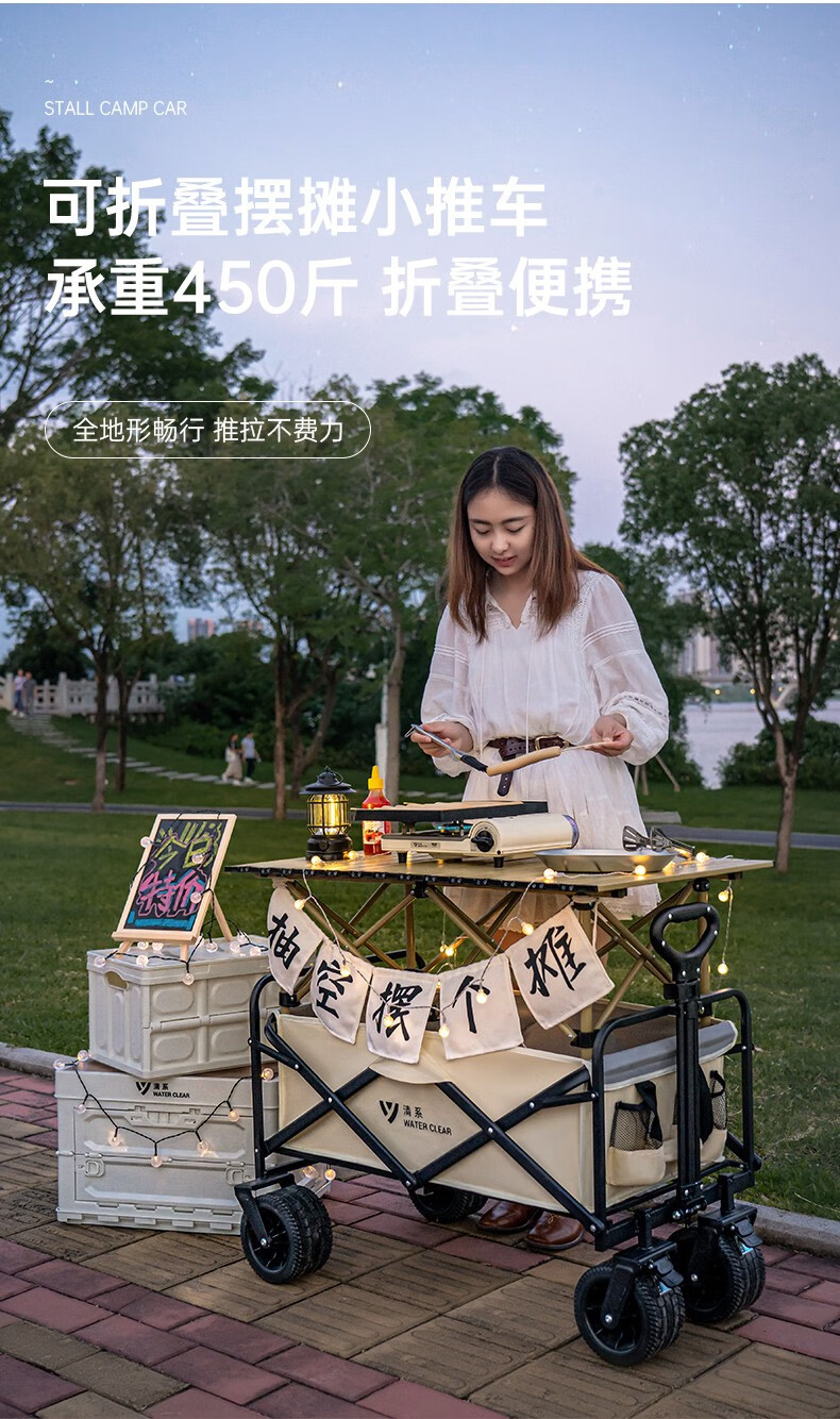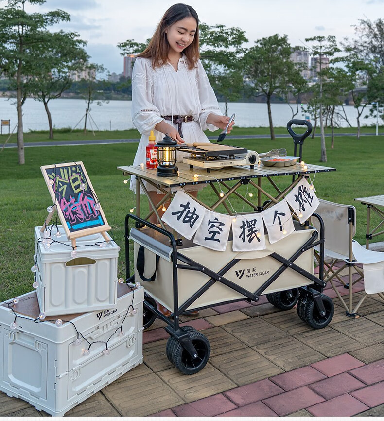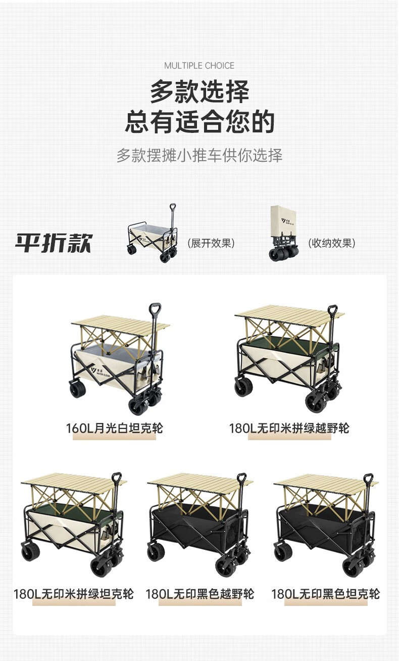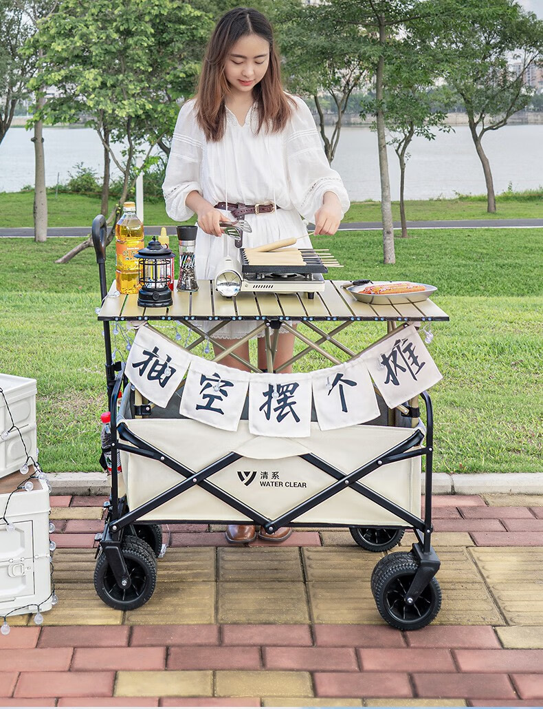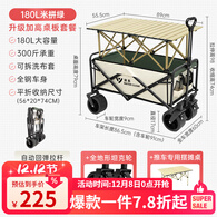 清系露营车野营车聚拢型折叠推车营地车露营推车户外手推车摆摊推车 180L 米绿坦克轮加高桌板套餐
