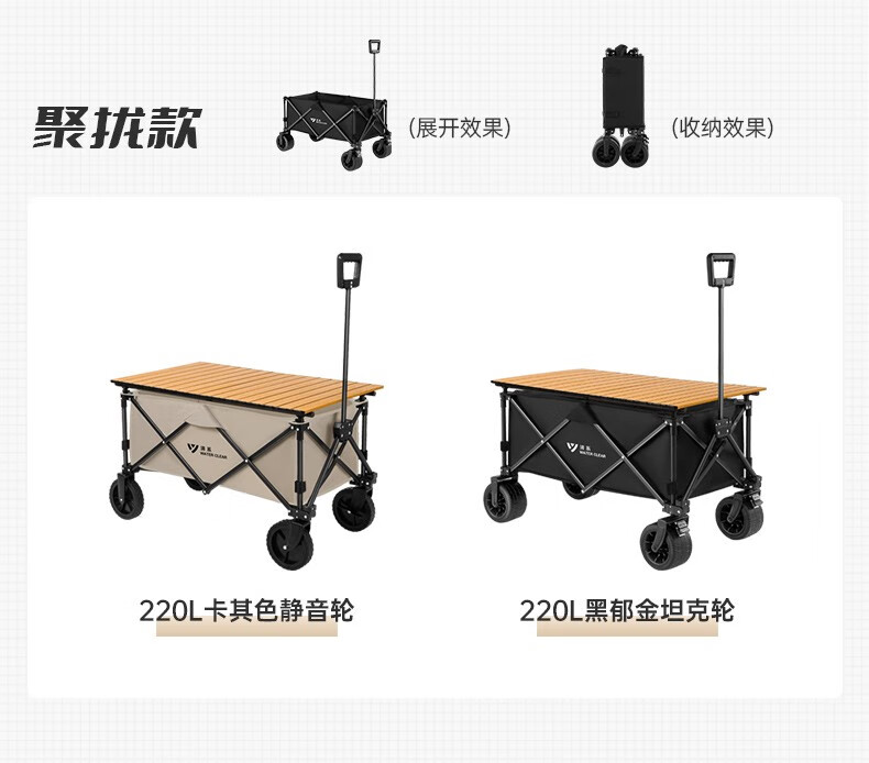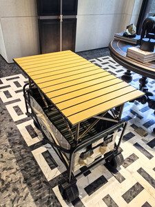 清系露营车野营车聚拢型折叠推车营地车露营推车户外手推车摆摊推车 150L 黒郁金高桌板套餐