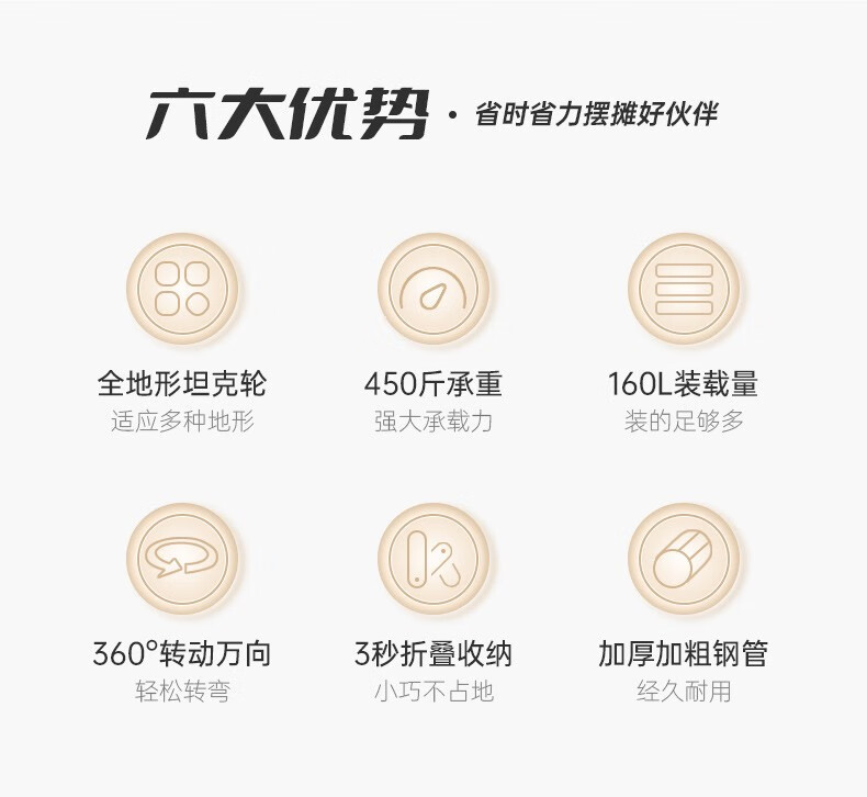 车子很结实,适合户外露营,摆个地摊也很方便,特别是搭配了一个蛋卷桌,很好巴适得很,买来就用上了。车子很结实,适合户外露营,摆个地摊也很方便,特别是搭配了一个蛋卷桌,很好巴适得很,买来就用上了。