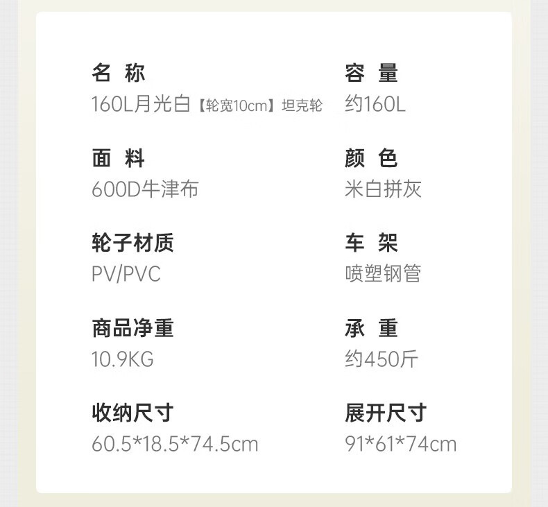 京东京造 150L聚拢型坦克轮可拆轮露营车专用配件遮阳棚雨棚