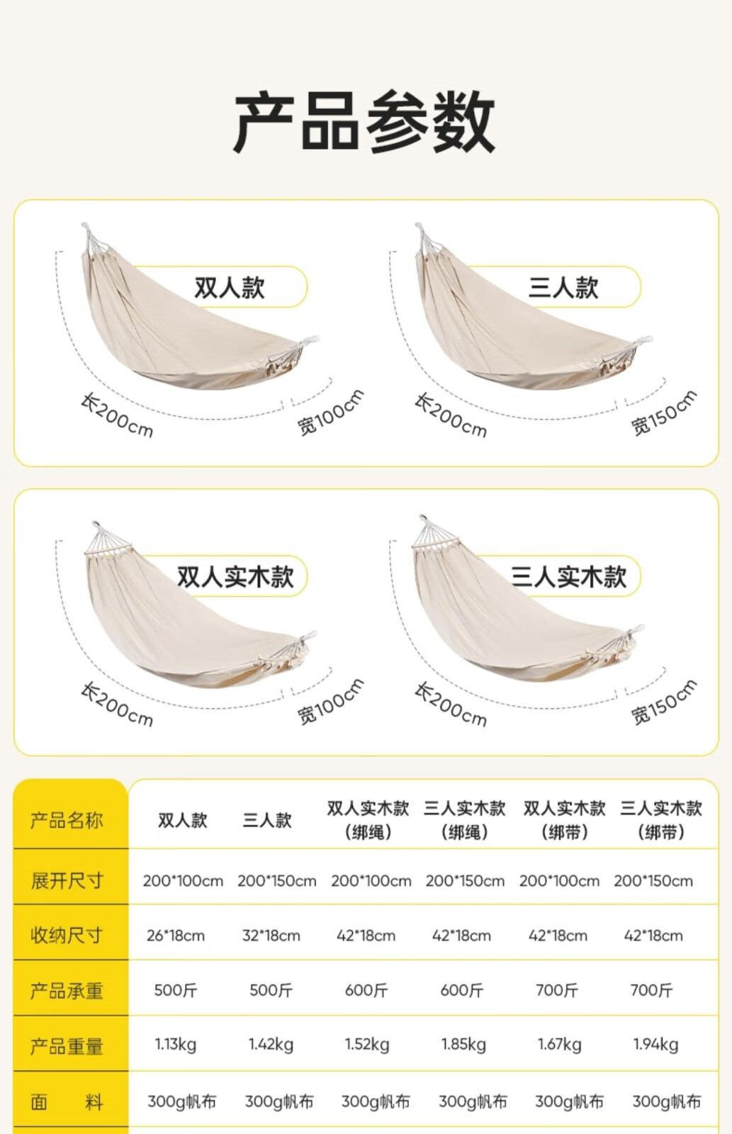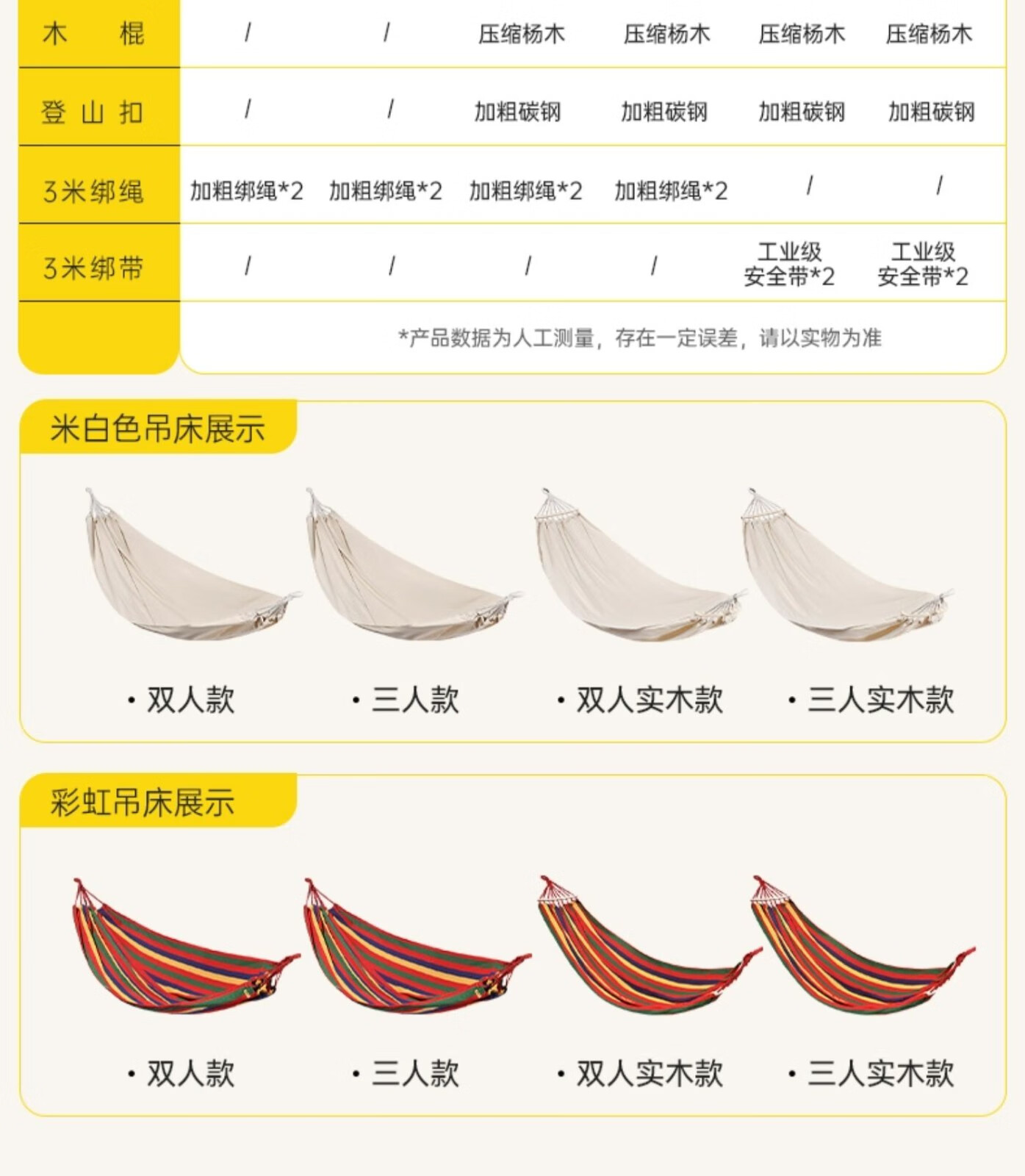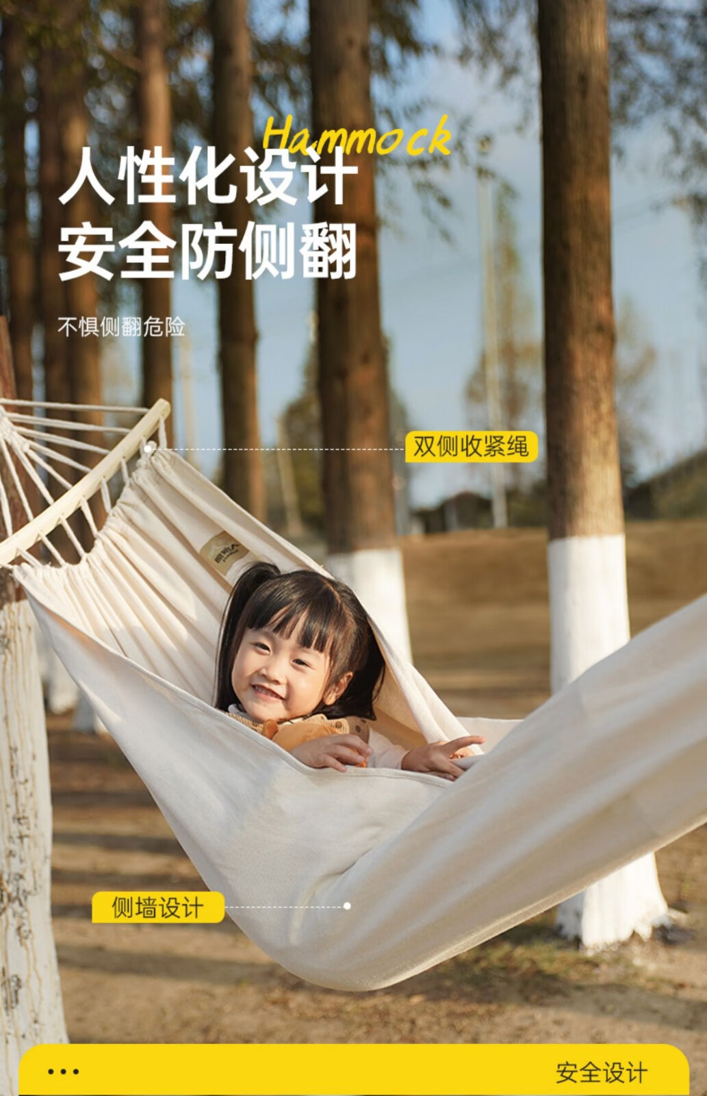原始人吊床户外成人加厚荡秋千双人防侧翻寝室学生摇床网床掉床神器 三人实木白-配3米绑带*2+登山扣