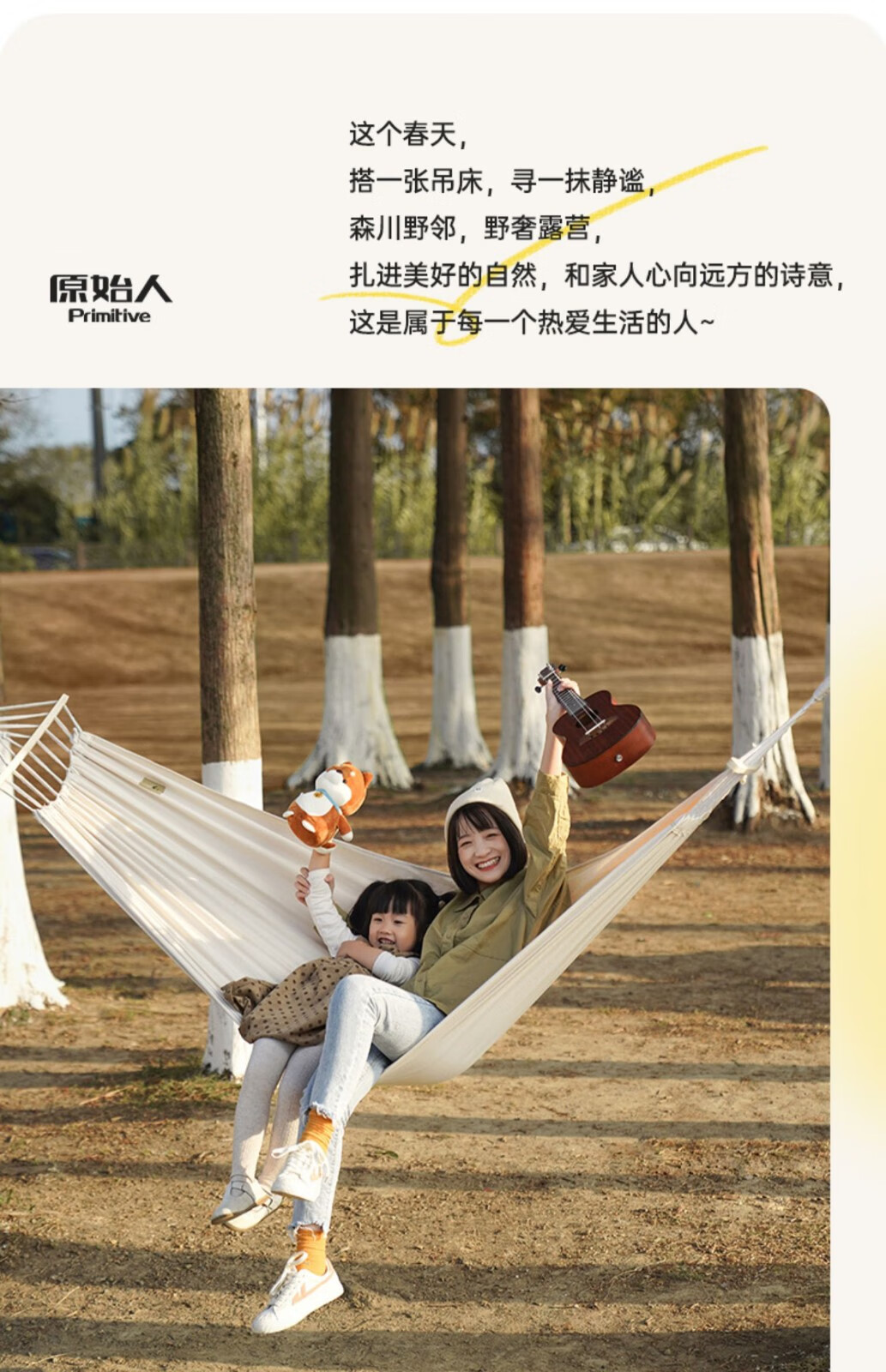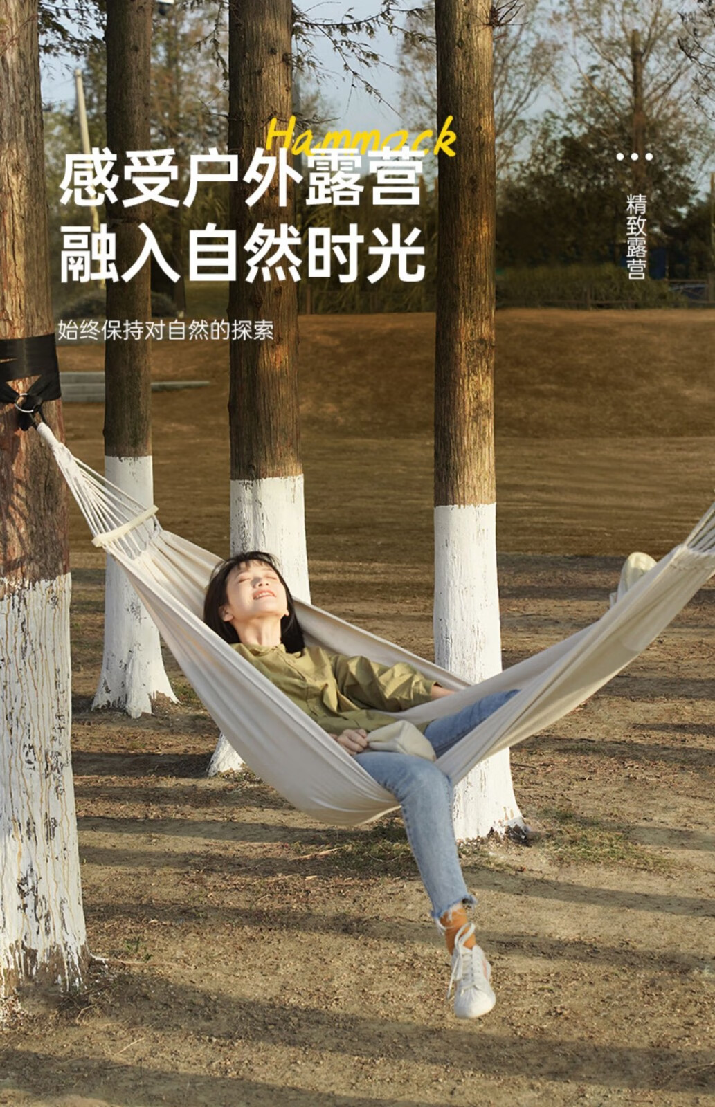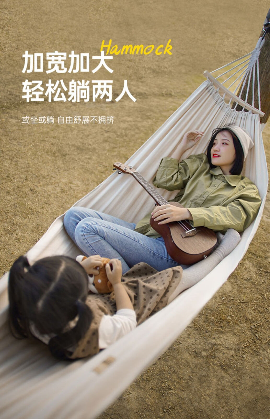 原始人吊床户外成人加厚荡秋千双人防侧翻寝室学生摇床网床掉床神器 三人实木白-配3米绑带*2+登山扣