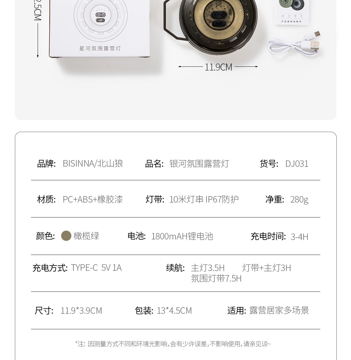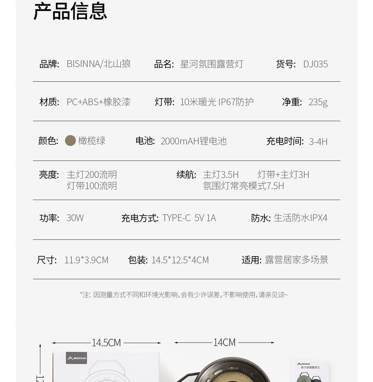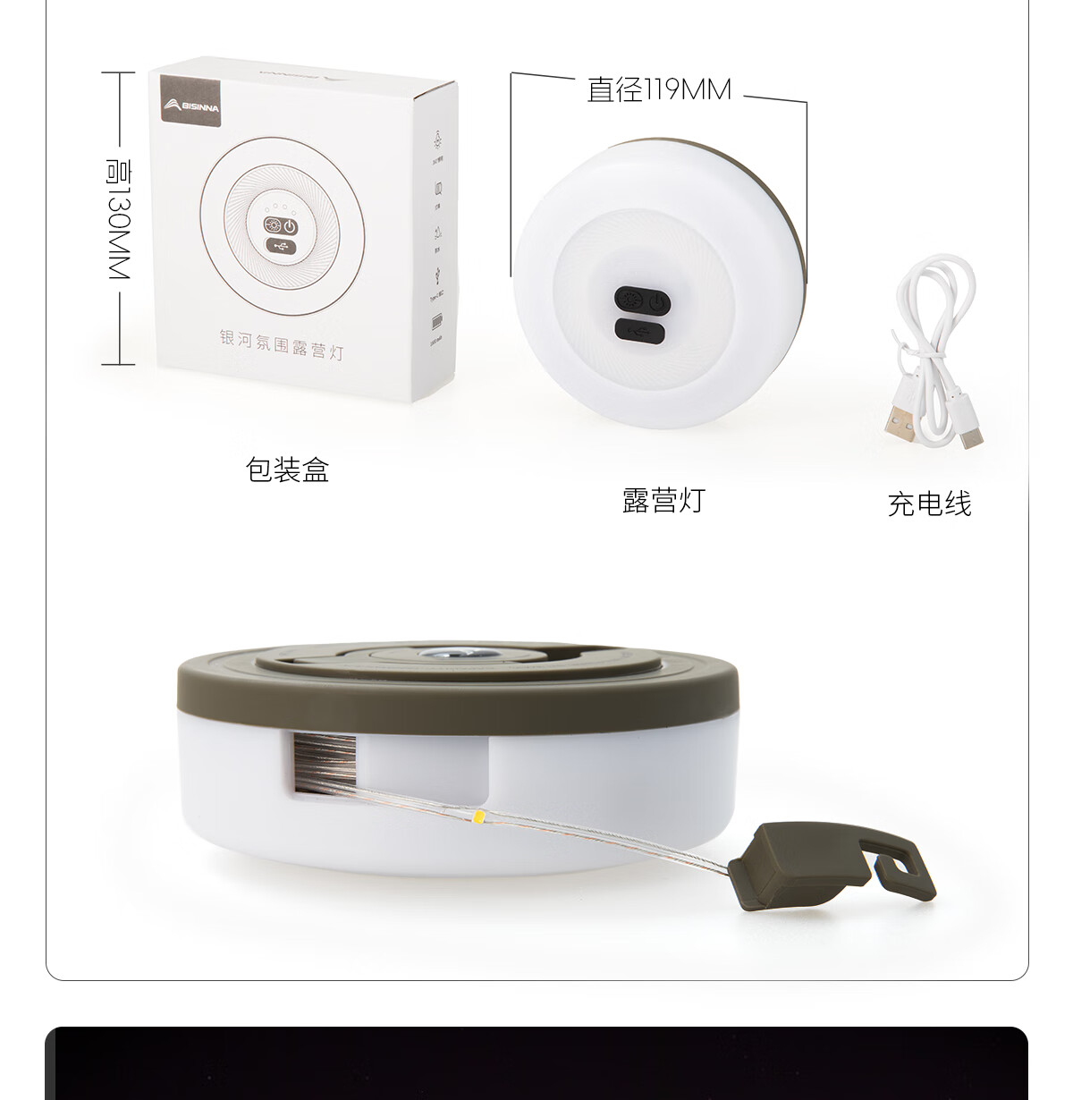 包装好,物流快。露营灯小巧好看,携带方便,有多种亮灯模式选择,还可以将灯带拉出作为氛围灯使用,灯带长度够长,回收也很方便快速像卷尺一样,户外露营的好搭档。