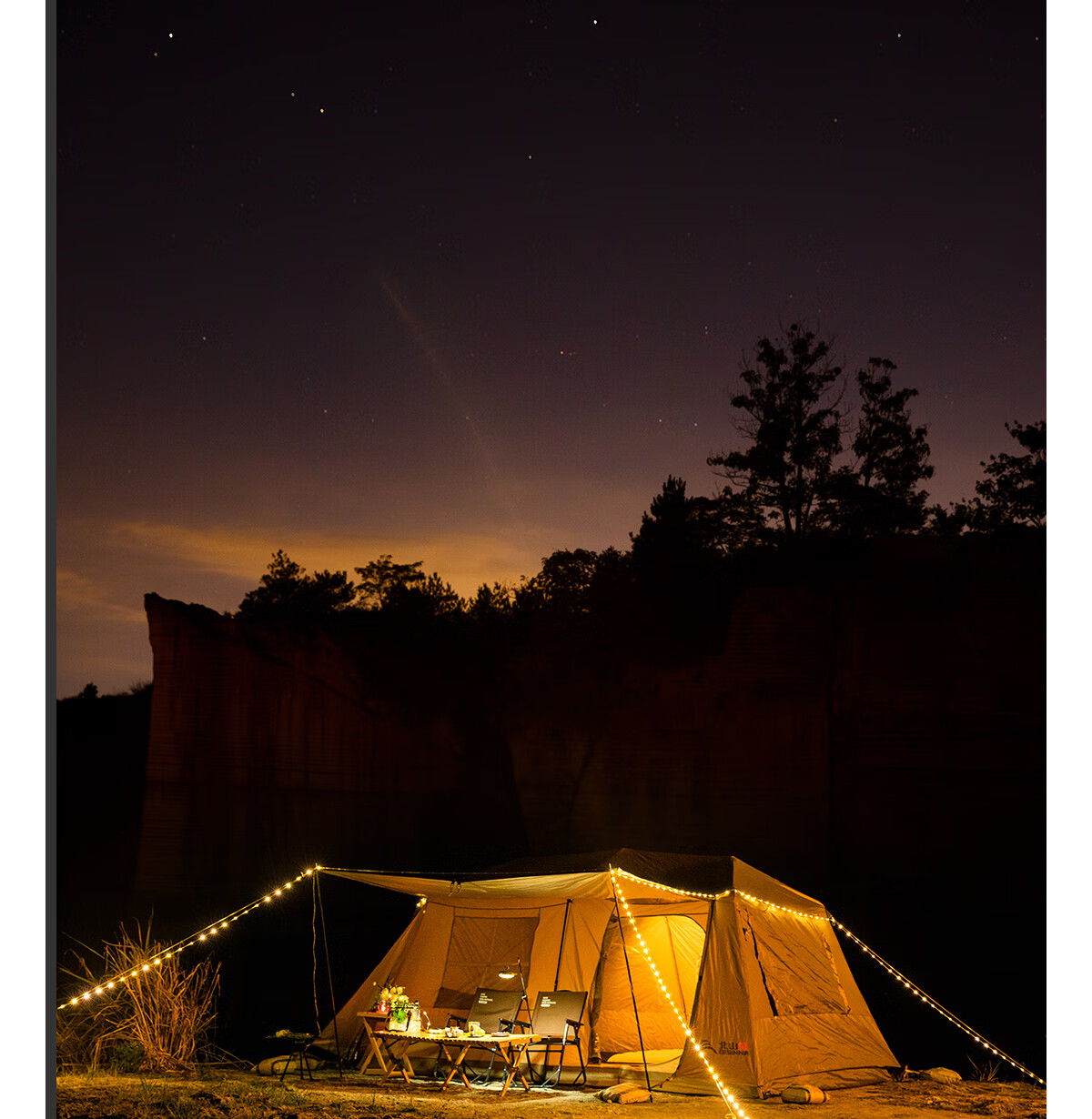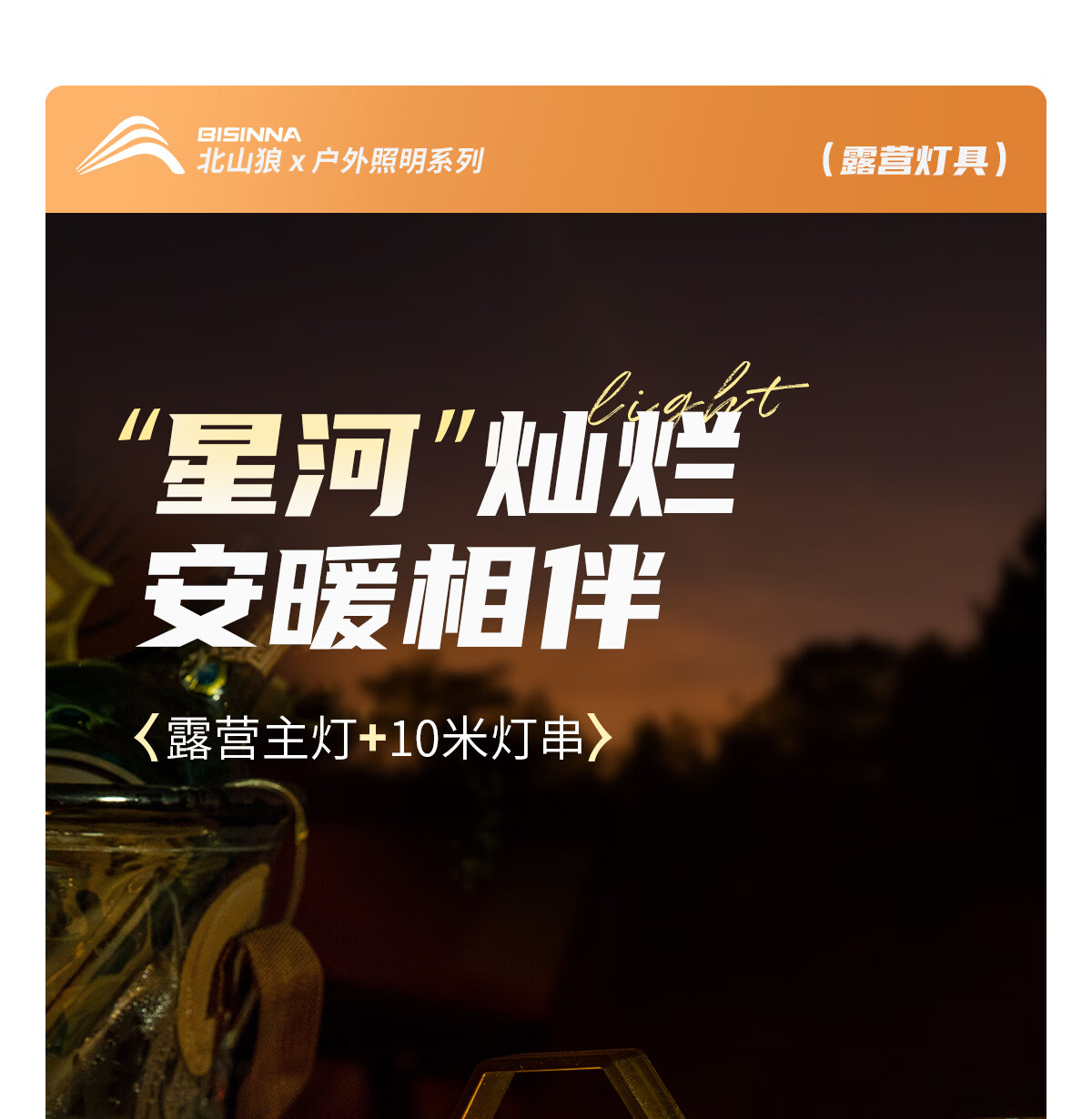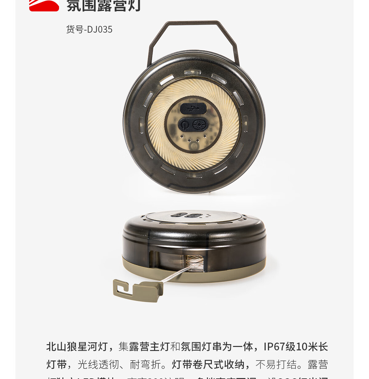 北山狼这款主灯+氛围灯串,简直是露营必备神器!一灯多用的设计太贴心,主灯亮度很足,能轻松照亮整个露营区域,晚上在帐篷周边活动,有它完全不用担心光线不够 。氛围灯串则为露营增添了不少浪漫气息,暖黄色的灯光星星点点,拍照超好看,让露营变得仪式感满满。而且安装起来也不复杂,很方便就能布置好 。续航也给力,充满电后能用挺长时间,不用担心玩到一半灯就没电了。无论是自己露营享受独处时光,还是和朋友家人一起嗨皮,它都能完美适配,强烈推荐给喜欢露营的小伙伴!