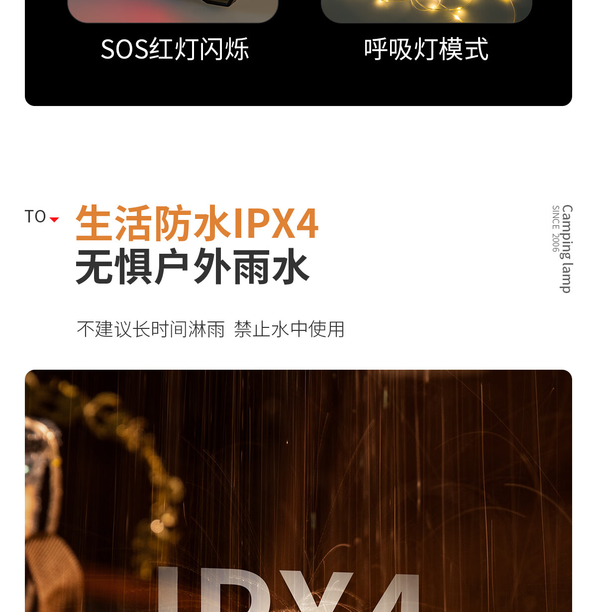 户外露营必备神器,氛围感拉满!看了这款灯的设计很喜欢,可以收纳,不占空间。灯的做工质地都非常不错,小灯又闪烁和常亮模式切换很棒,整个功能性的设计都很到位。准备再买一个送朋友。