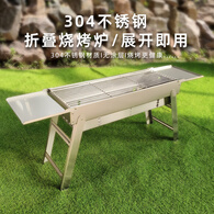 304不锈钢烧烤炉户外加厚便携式折叠烧烤炉子木炭烧烤工具全套 80厘米长基础款