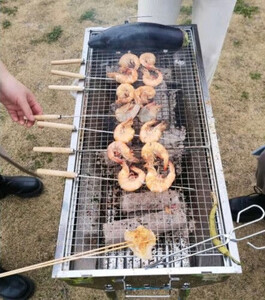 收到烧烤架,包装很好,没有破损,买的是套装,一套买齐了,烧烤签,木炭,刷子,各种工具都有,买来直接就可以开烤,烧烤架也很大,一家人出来烧烤,很惬意啦