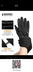 黑冰(BLACKICE)冬季户外徒步露营骑行防风加绒保暖可触屏防滑软壳手套Z2302黑色S