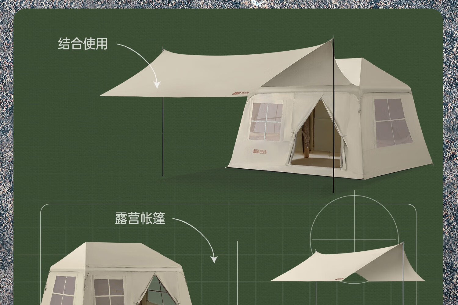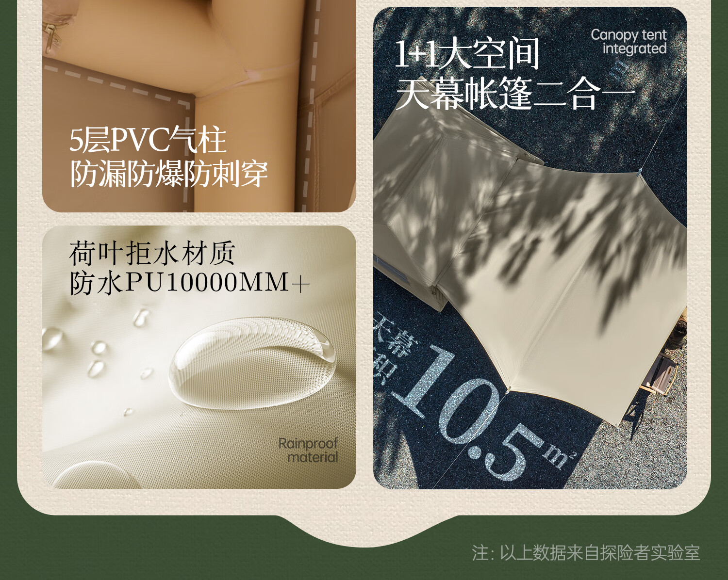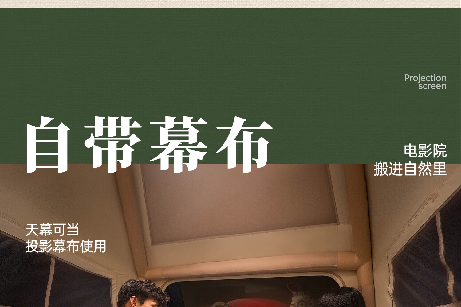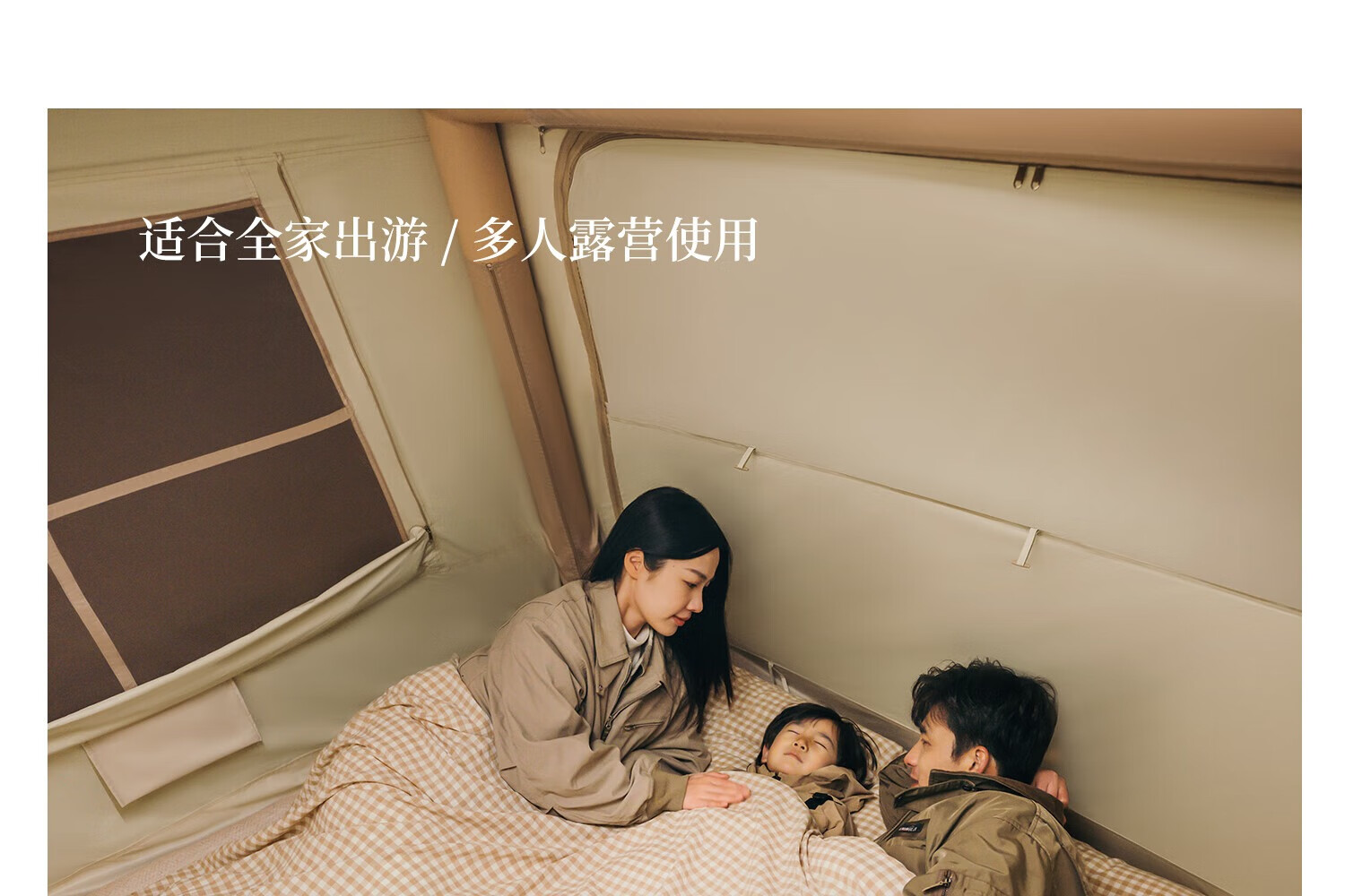 帐篷的设计很满意,在家展开超大够宽,天幕尺寸大家里空间不够,在公园搭建起来简单快速,充气不需要太多步骤,女生也可以独立操作。