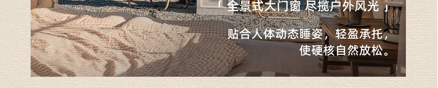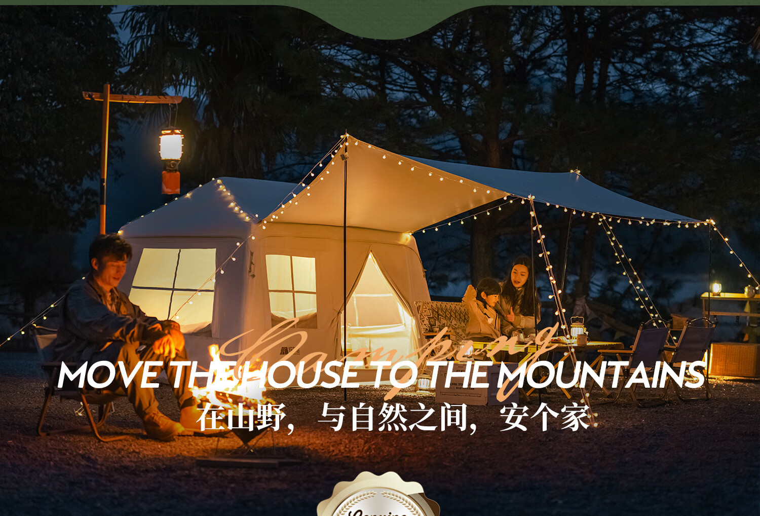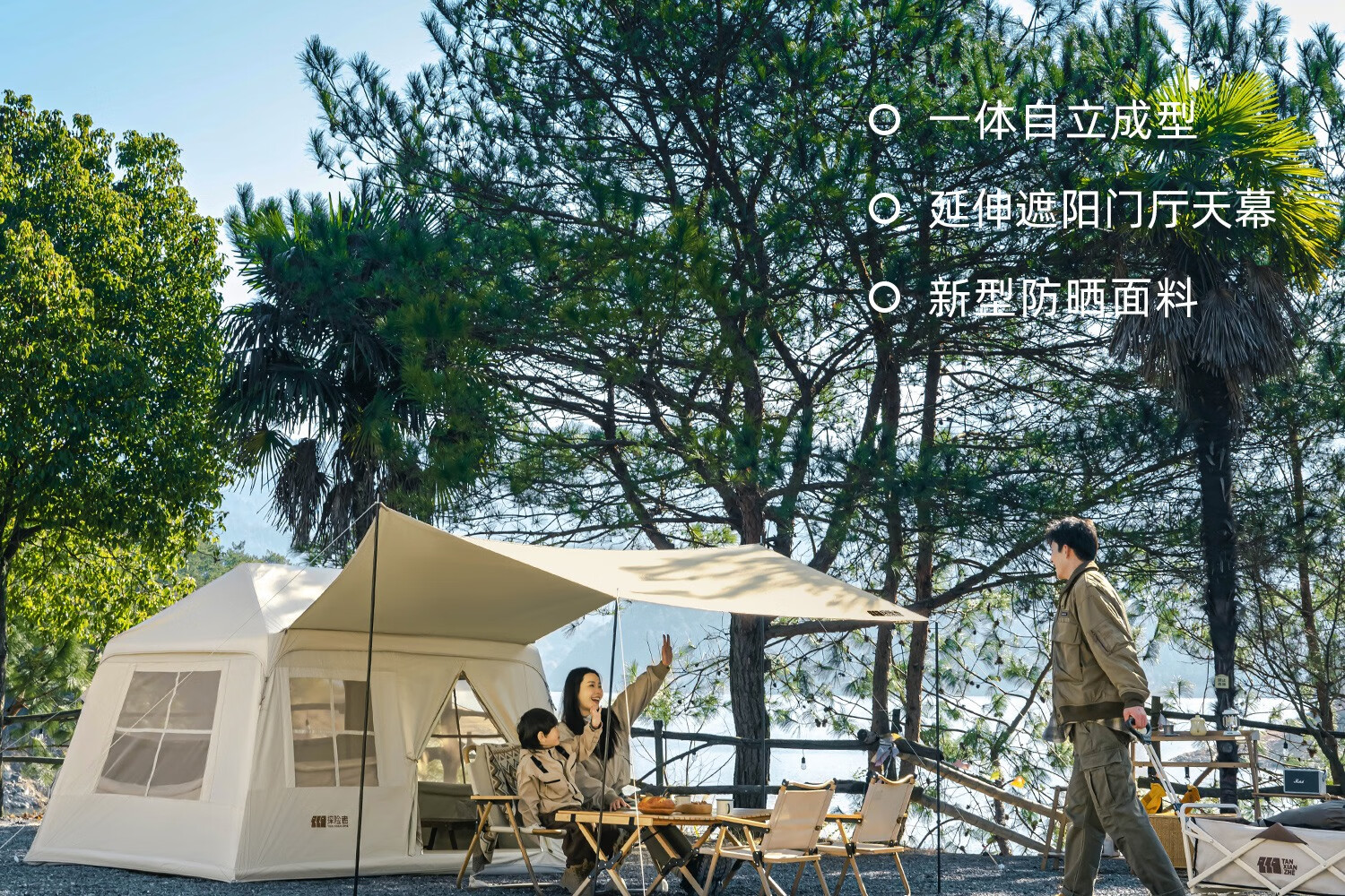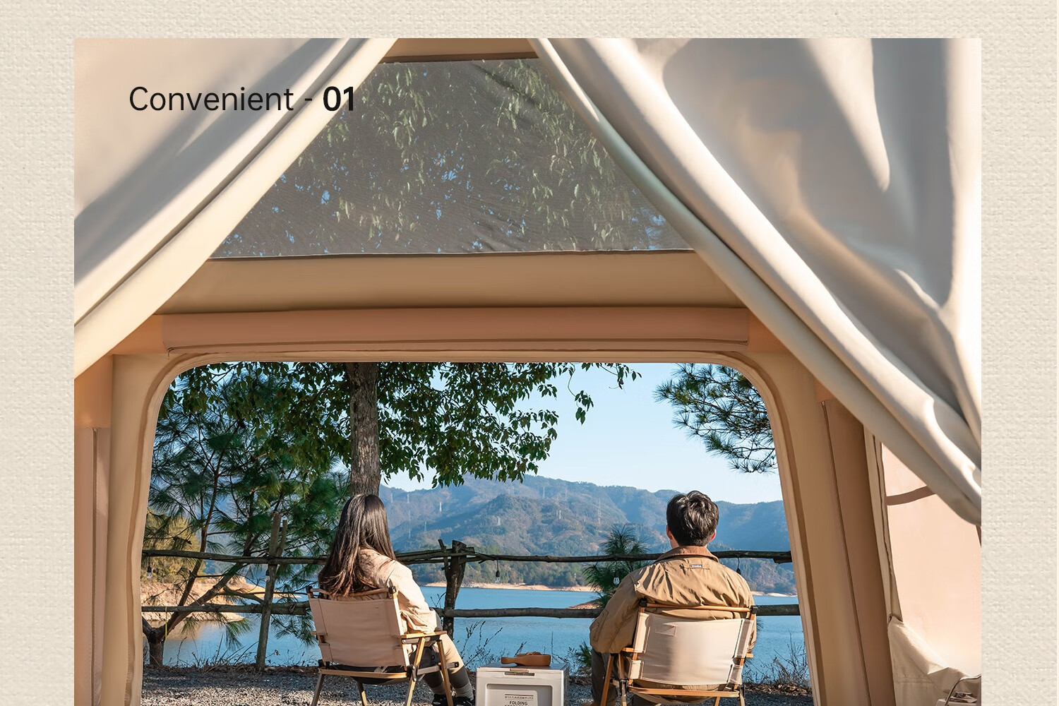 帐篷的设计很满意,在家展开超大够宽,天幕尺寸大家里空间不够,在公园搭建起来简单快速,充气不需要太多步骤,女生也可以独立操作。