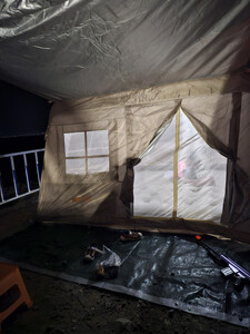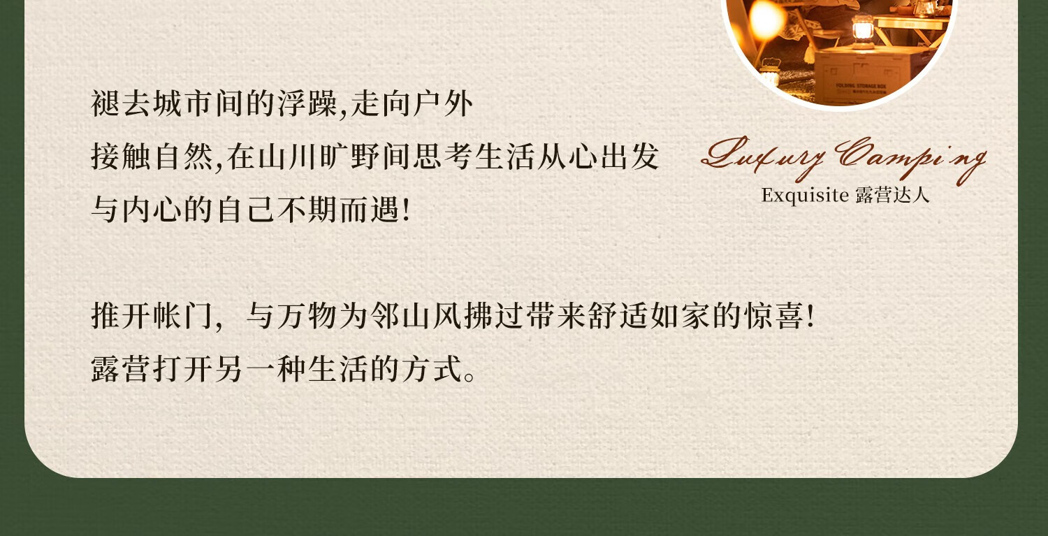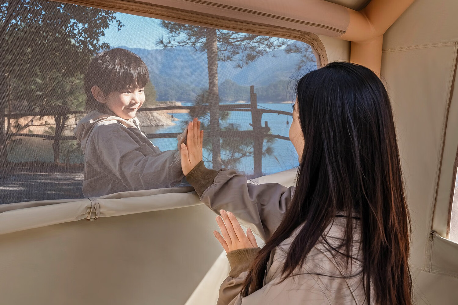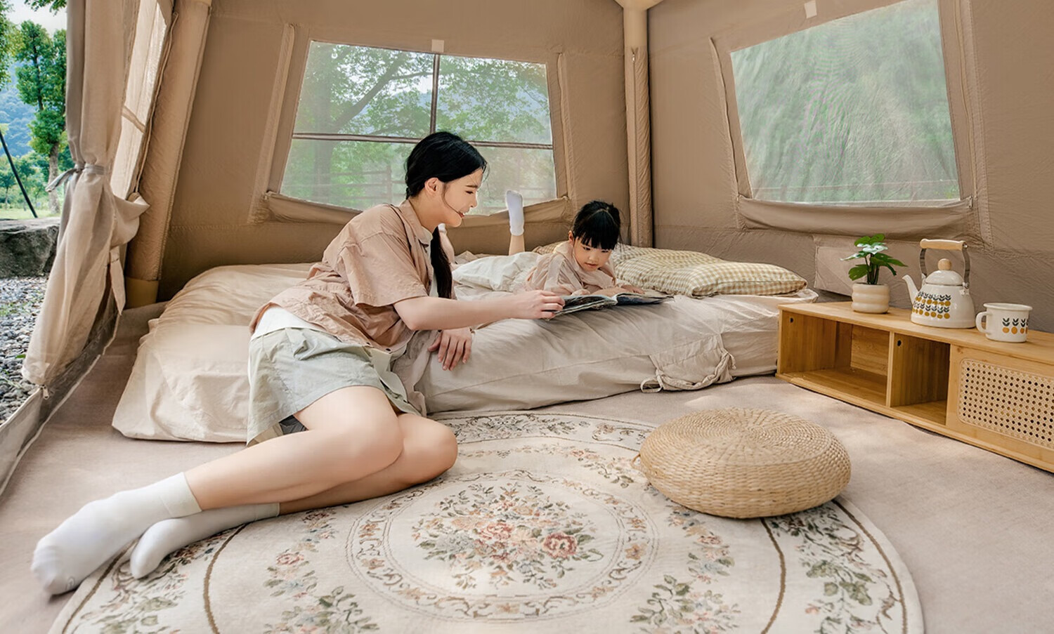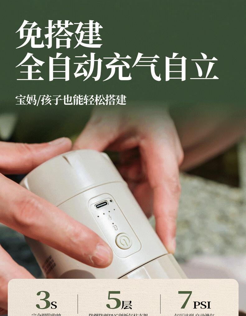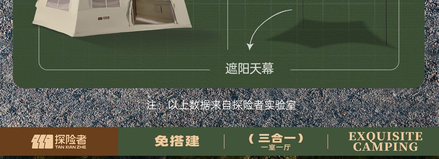 帐篷的设计很满意,在家展开超大够宽,天幕尺寸大家里空间不够,在公园搭建起来简单快速,充气不需要太多步骤,女生也可以独立操作。
