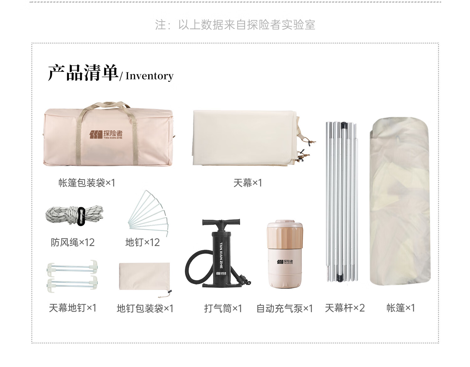 探险者充气帐篷户外露营全自动帐篷天幕二合一防雨过夜加厚野营全套装备 云筑银胶充气帐篷带天幕+自动泵