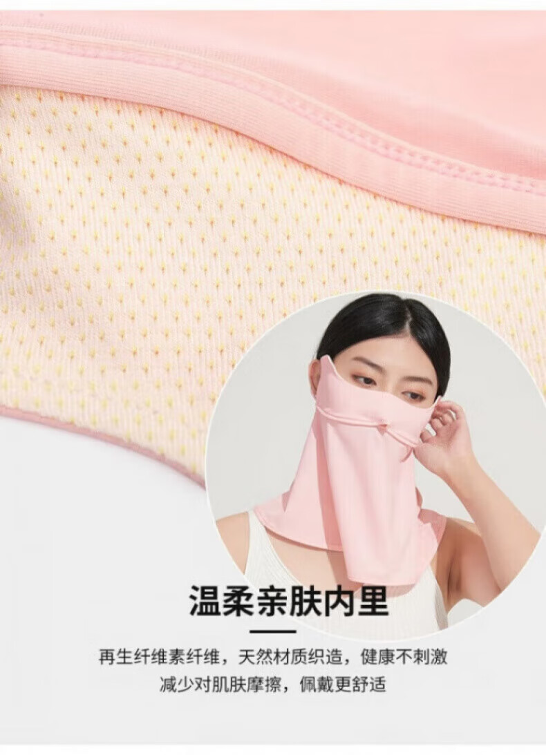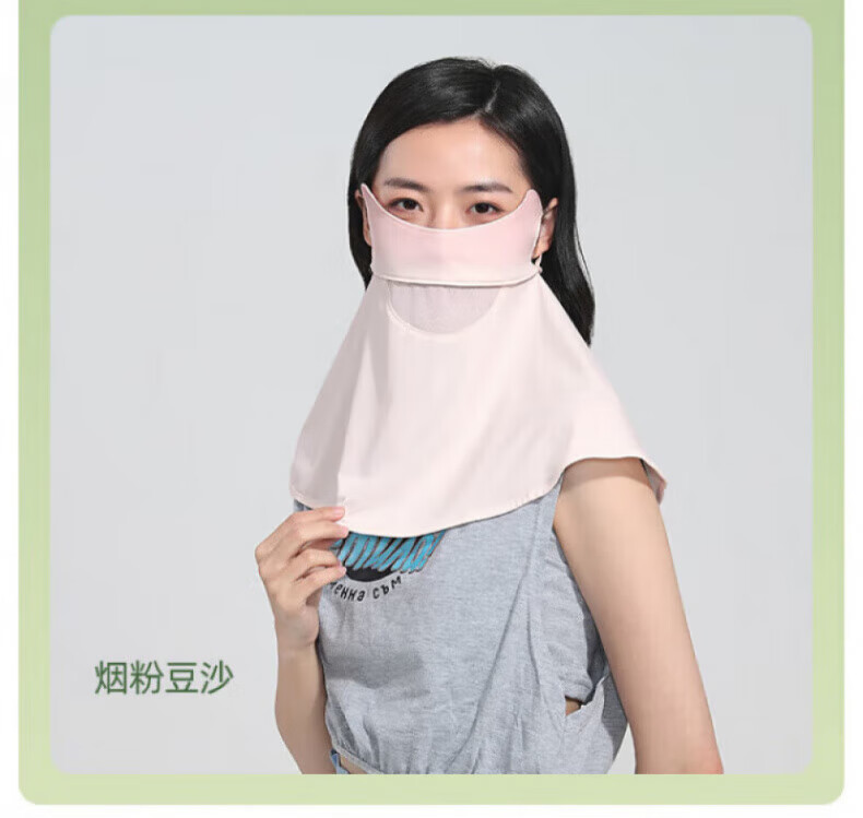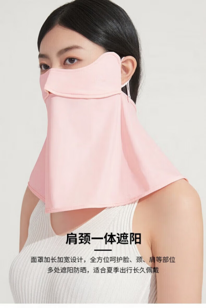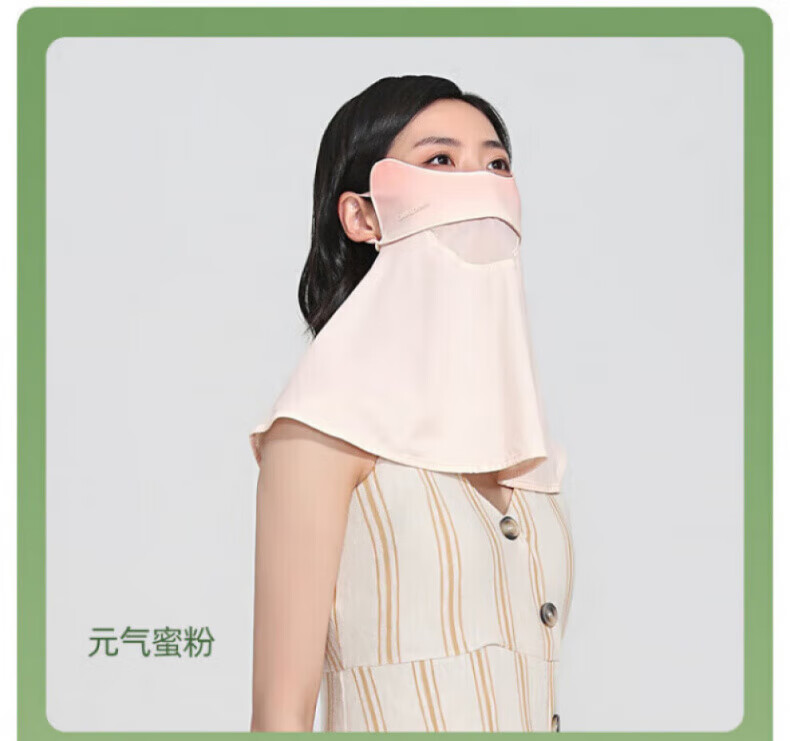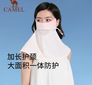 骆驼腮红防晒面罩女士全脸遮阳面纱透气防尘口罩冰丝护颈 【腮红冰丝】元气蜜桃,H0053A