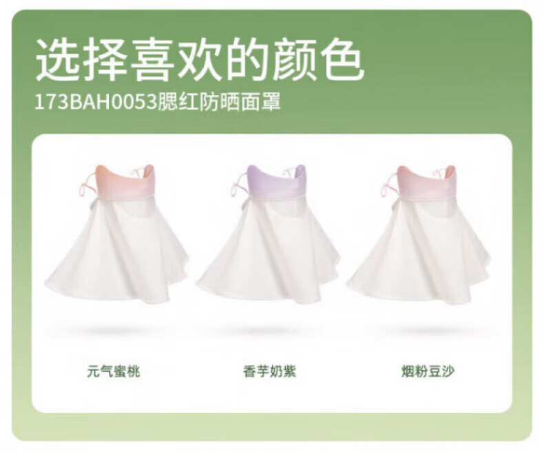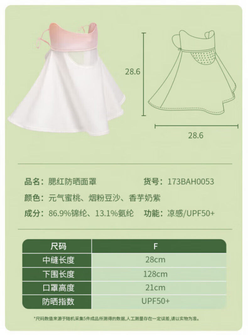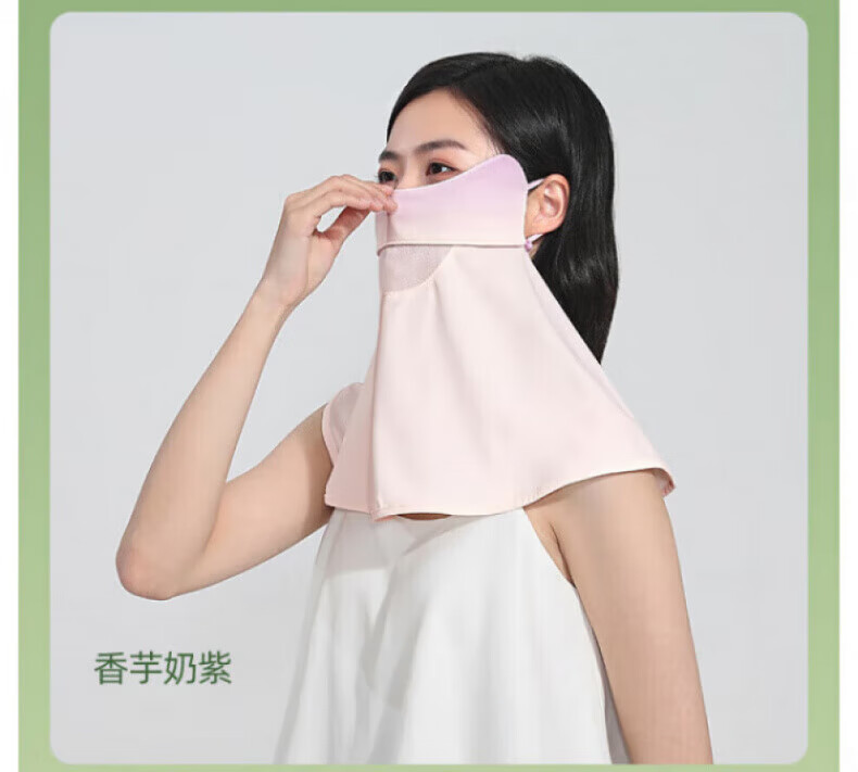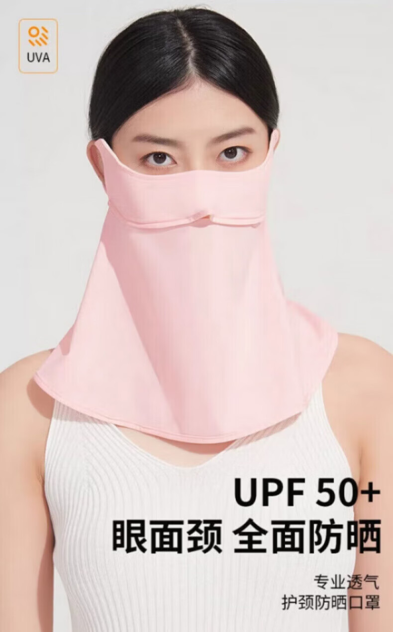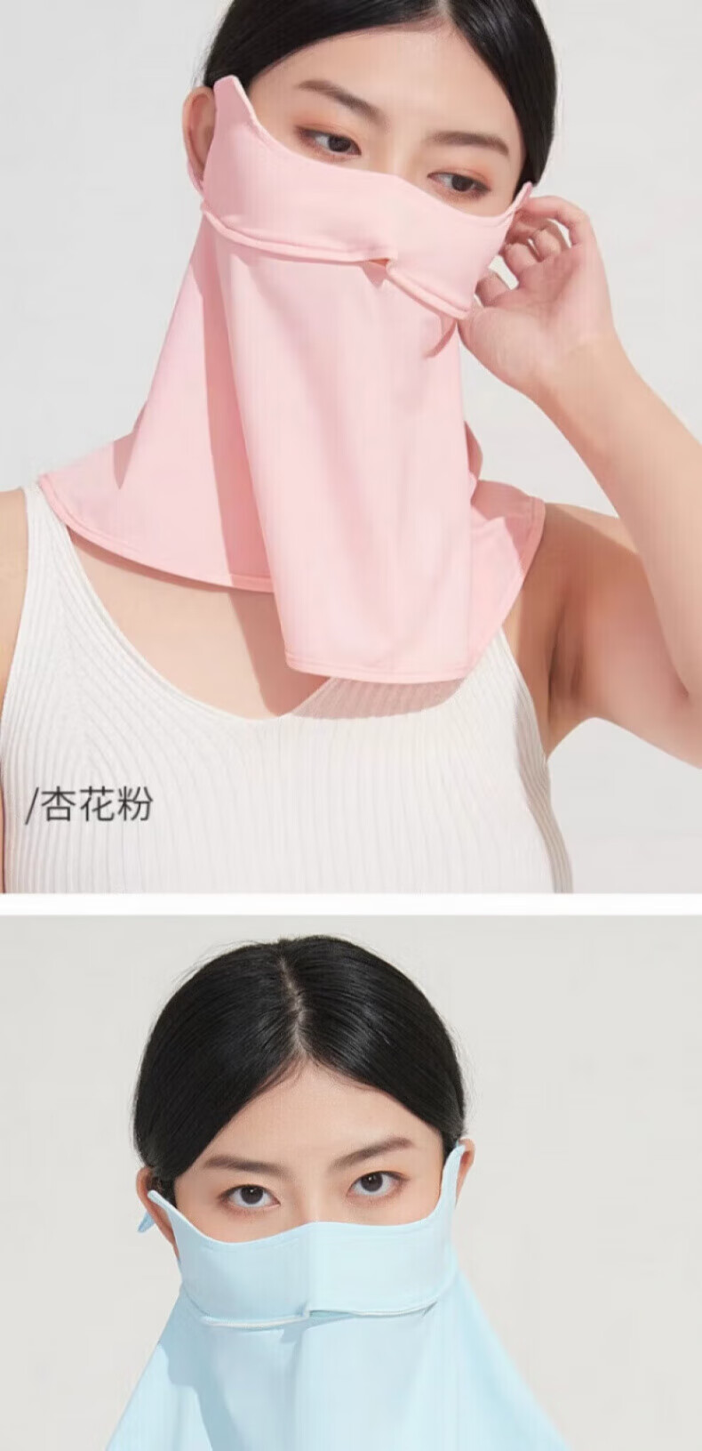 骆驼腮红防晒面罩女士全脸遮阳面纱透气防尘口罩冰丝护颈 【腮红冰丝】元气蜜桃,H0053A
