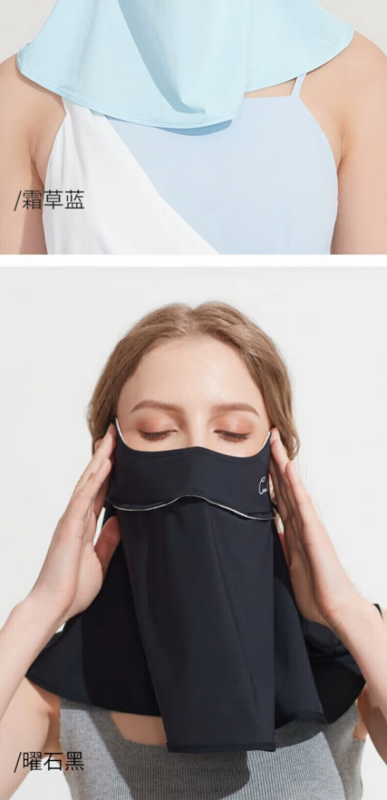 骆驼腮红防晒面罩女士全脸遮阳面纱防紫外线透气防尘口罩冰丝护颈 A0W3VJ103A,霜草蓝,纯色冰丝