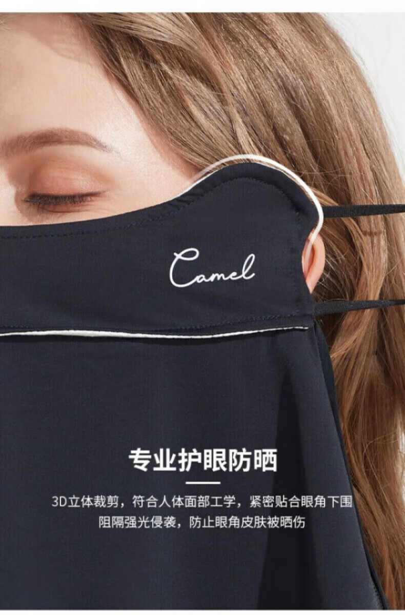 骆驼(CAMEL)防晒口罩薄款夏季女高颜值户外开车骑车跑步凉感透气面罩防尘 174BP17665D,黑色