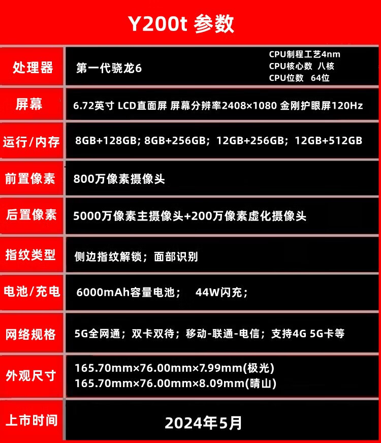 vivo Y200t【24期免息】5G全网通 44W 6000mAh 120Hz护眼屏 双扬300%大音量 第一代骁龙6 新AI老人手机 青山 12GB+512GB 12期免息【赠2年店铺延保+90天碎屏保】