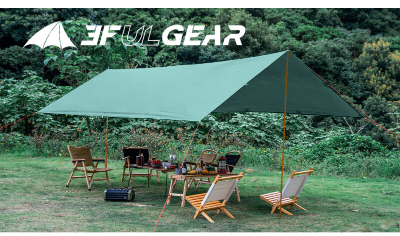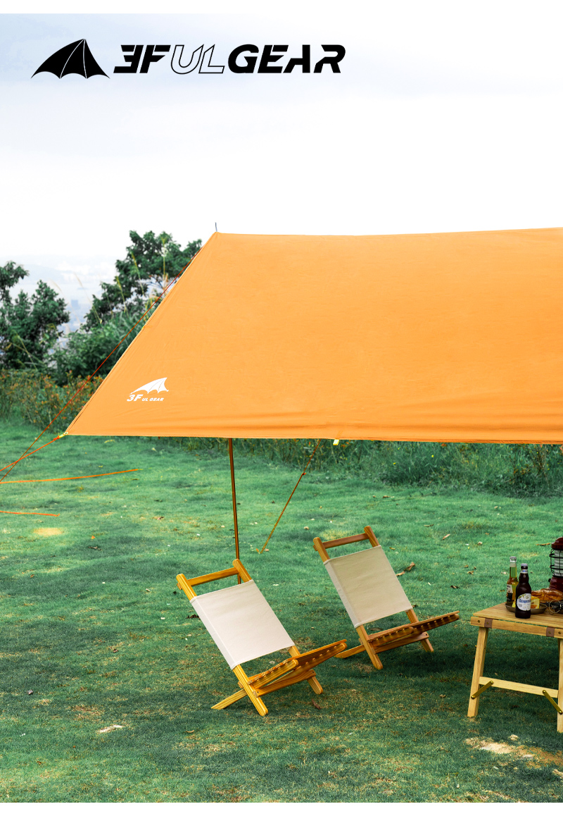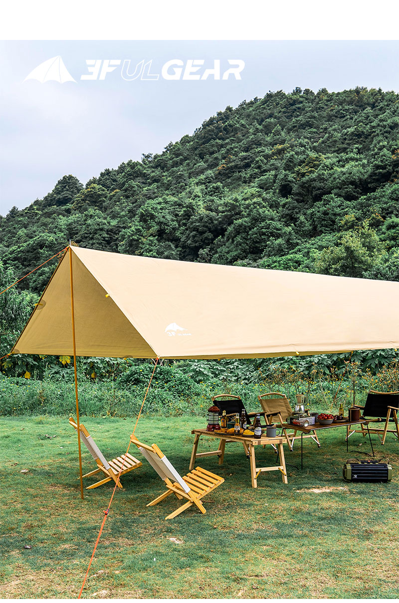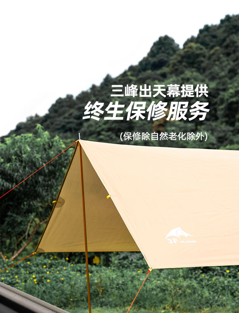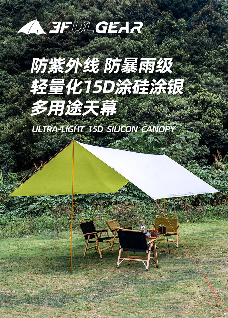 三峰出户外天幕15D超轻超大天幕 防雨水涂银防晒紫外线多用途天幕布 15D天幕无杆款 涂银灰白 3米*4米