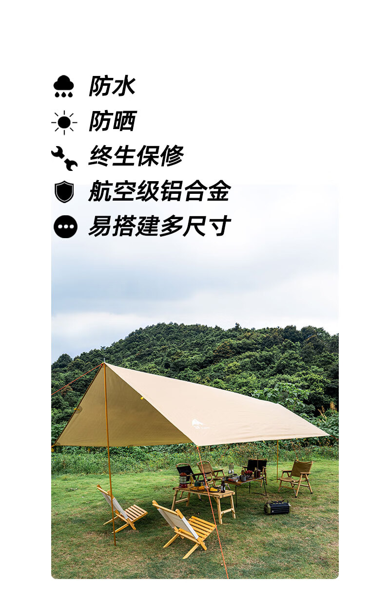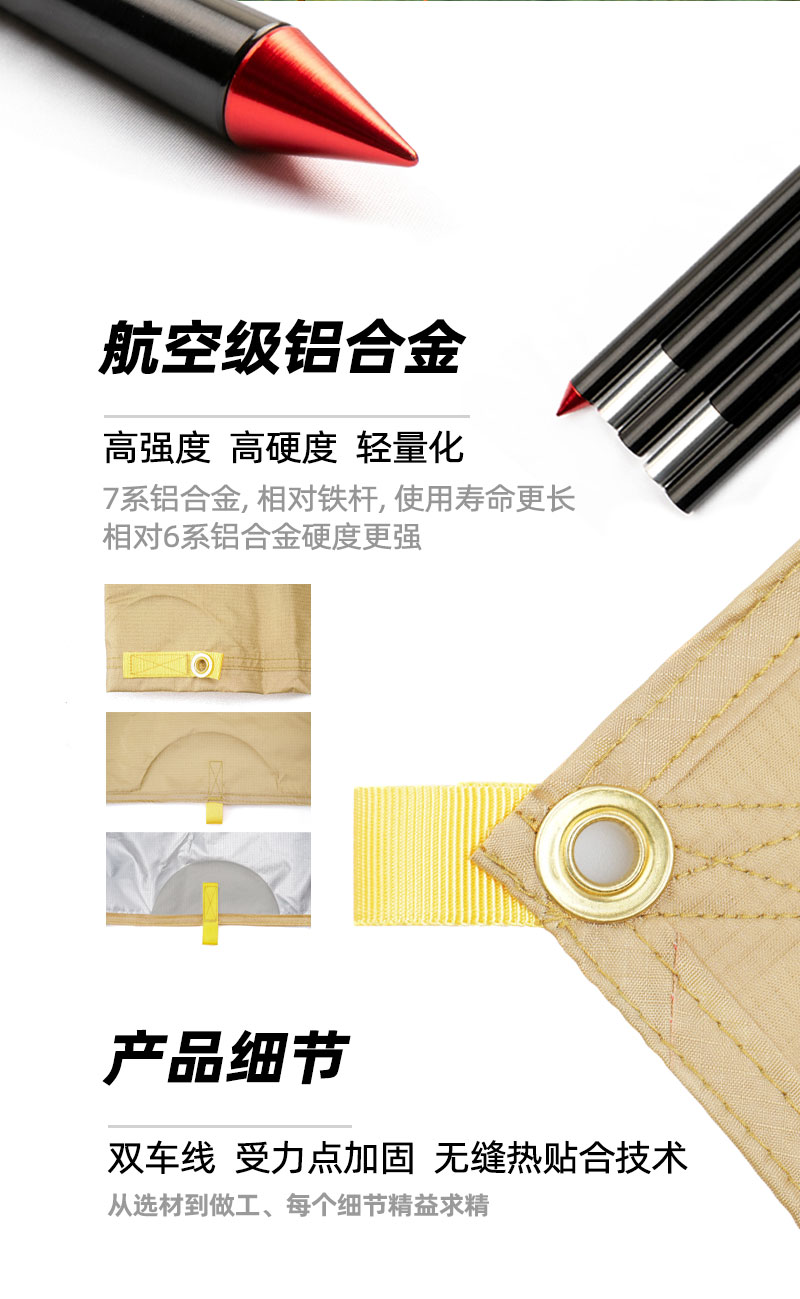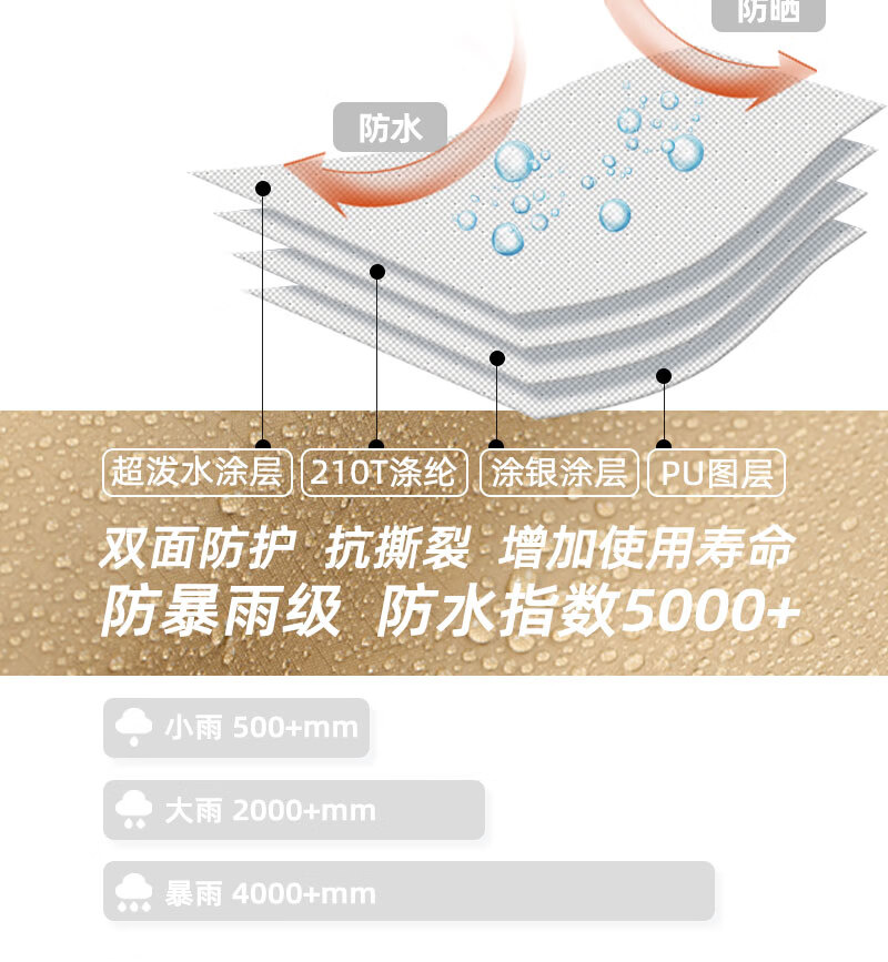 柏潮户外天幕便携加厚黑胶银胶野营野餐抗风防雨遮阳棚露营装备 卡其色 涂银款天幕防雨送全套工 方形长0.36*0.36米丨1人用