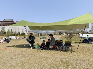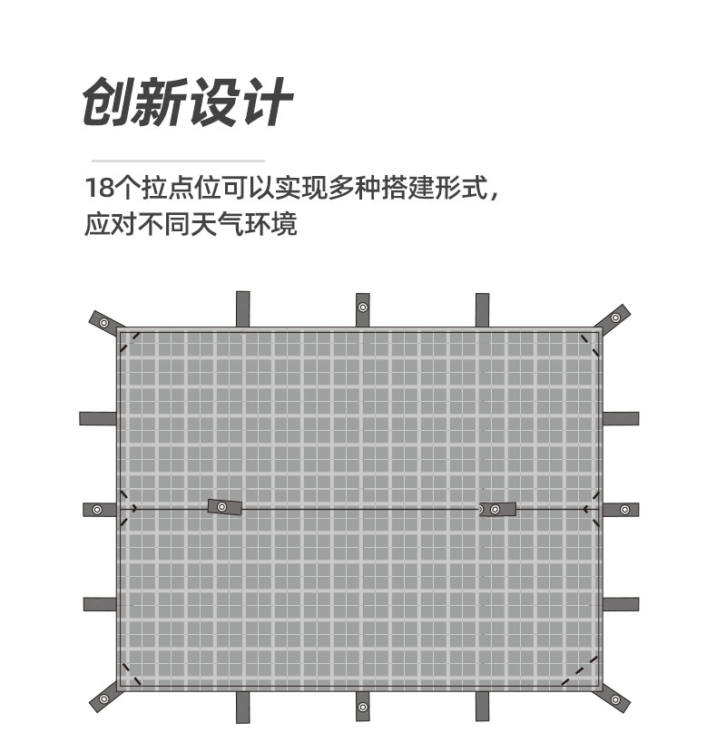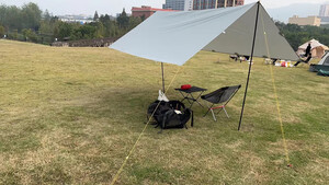 这个超轻天幕搭出来并不算小,一家人三口徒步短线能带上。通用性不错。搭配他家的铝杆使用很方便,但是实话实说抗风性能一般,但是胜在轻便好带能进包,而且因为小点和轻所以特别好搭建。