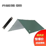 三峰出 天幕涂银防晒紫外线 5*3米防雨水户外露营沙滩遮阳雨篷野餐 郊游 5X3布带杆(草绿)涂银