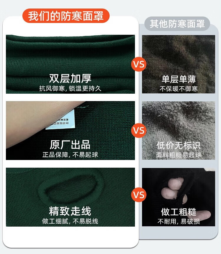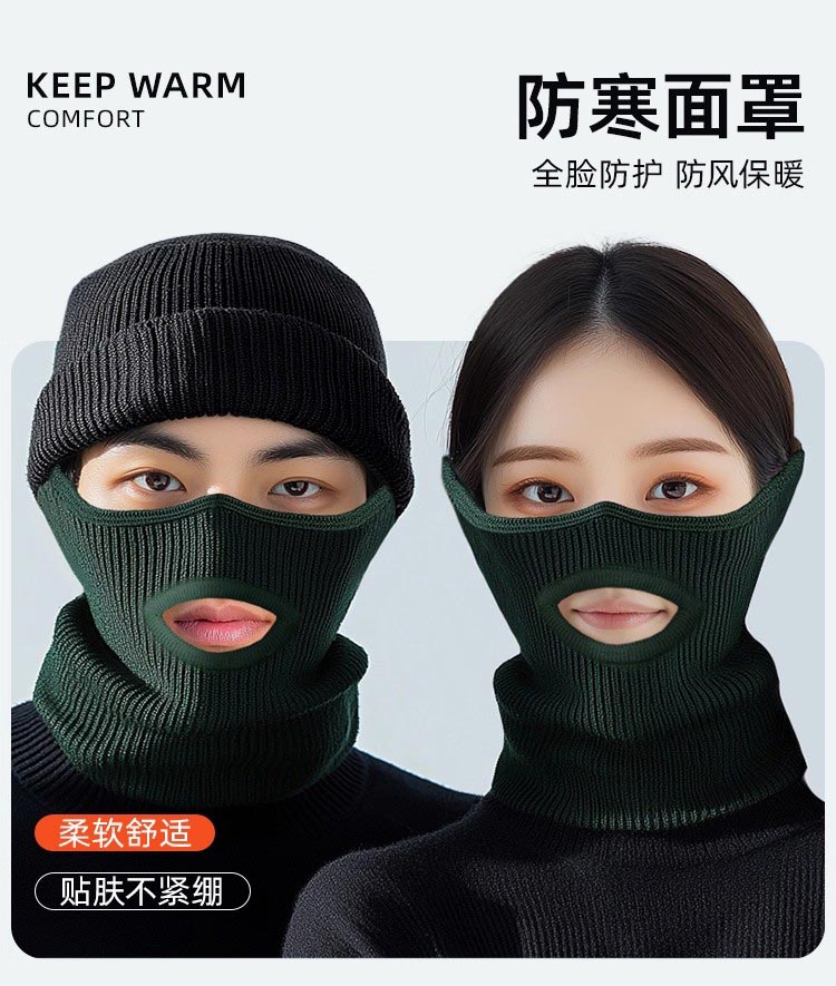 很贴合脸部,保暖效果也很好,针织的面料贴在脸上也不刺痒很不错
