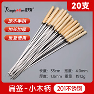 不锈钢烧烤签木柄烧烤针圆签扁签签羊肉串烤肉签签子烧烤配件工具 木柄35cm扁签5支