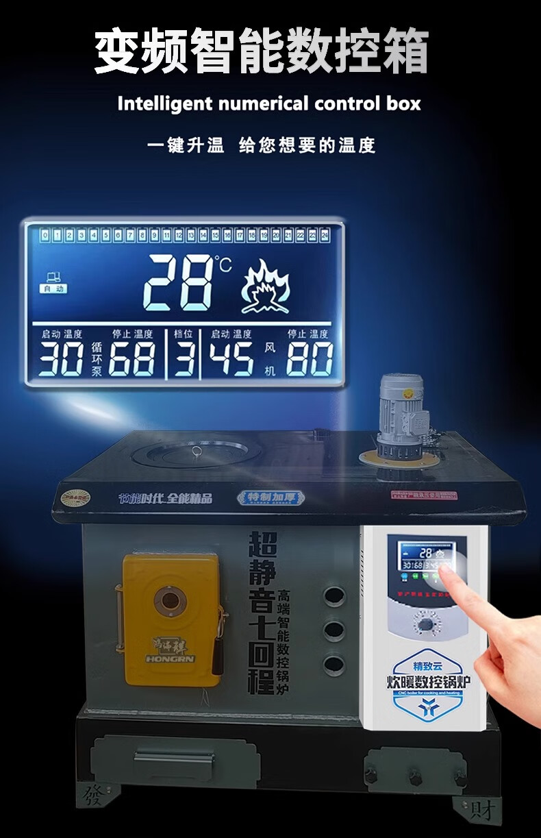 鸿瑞祥数控锅炉煤电柴七回程反烧通炕农村取暖炉家用地暖新型养殖水暖 160#数控七回程【煤柴款】