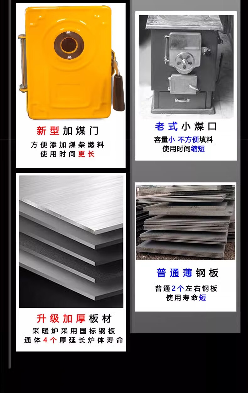 煤电柴多功能网红锅炉智能懒汉锅炉炊事烤箱炉节能取暖炉地暖两用 煤柴220#加厚型