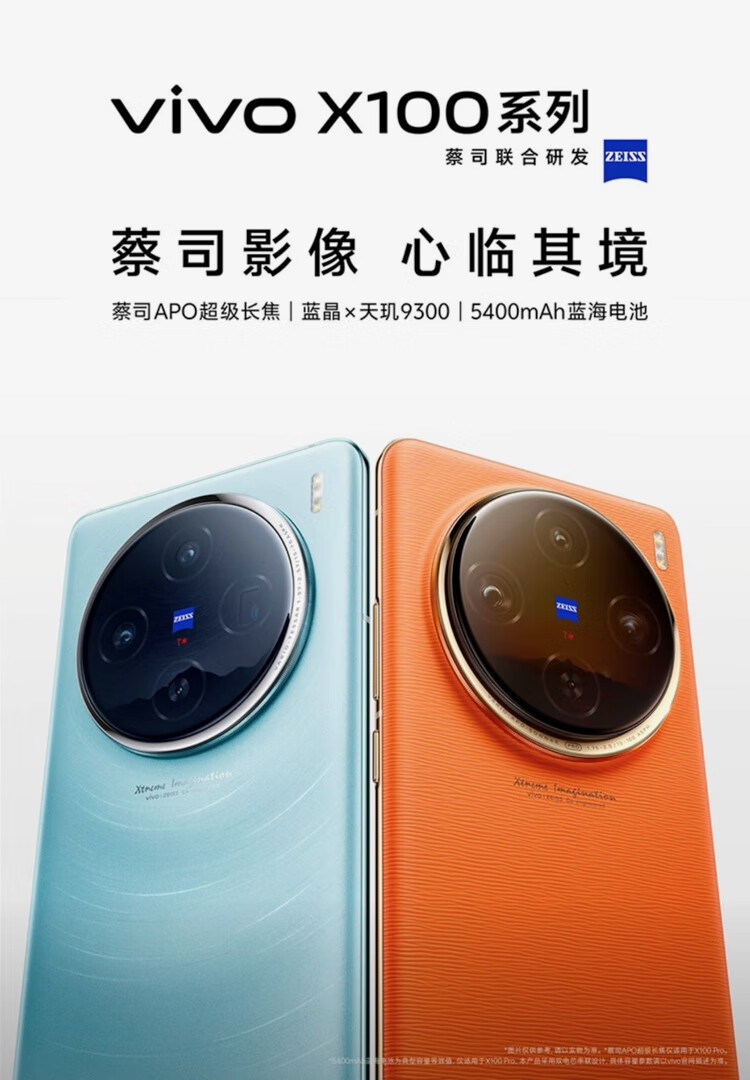 vivoX100/X100pro天玑9300芯片 蔡司影像拍照 蓝海电池 5G双卡全网通 X100 星际蓝 16GB+256GB 单机+第三方快充+店保一年