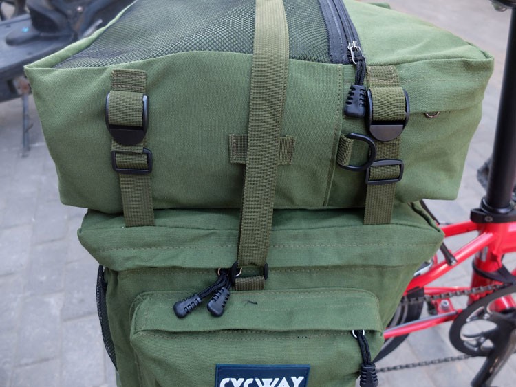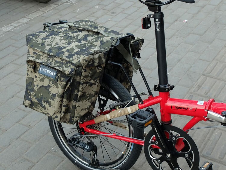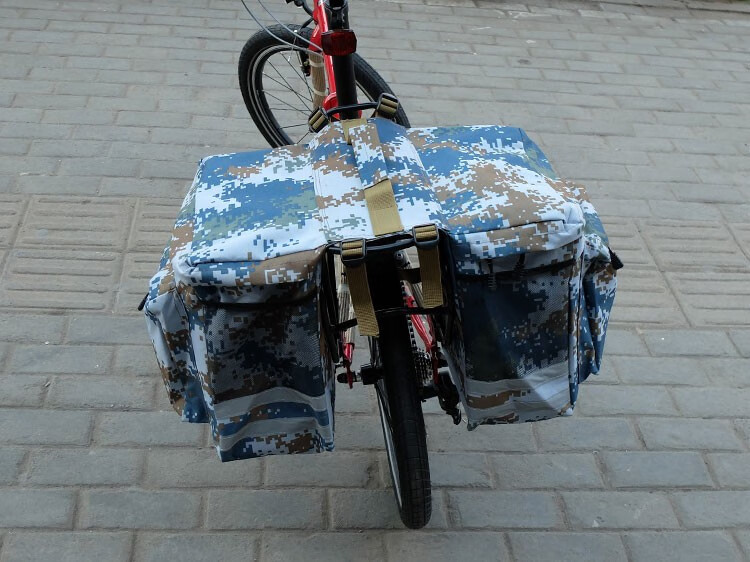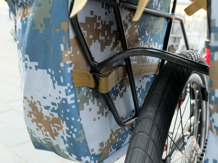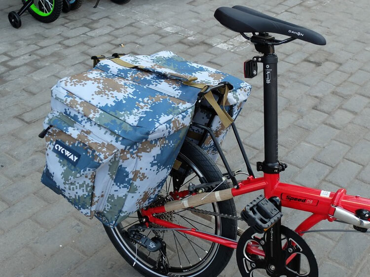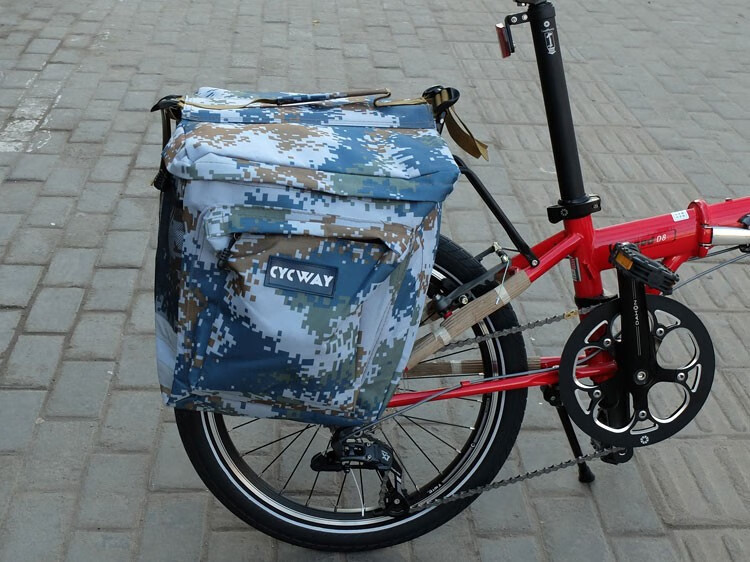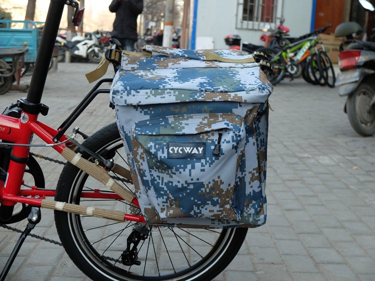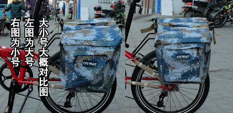 小号侧包约高30厘米,宽25厘米,厚14厘米,中间连接部分约16厘米宽,总容量30L左右。