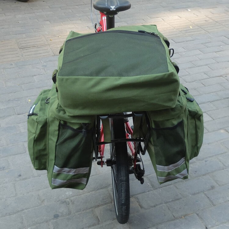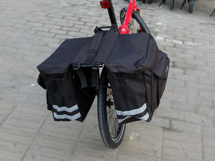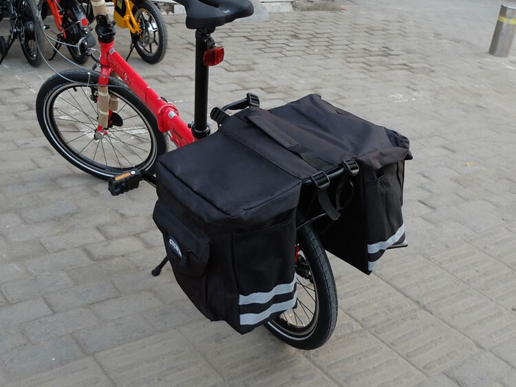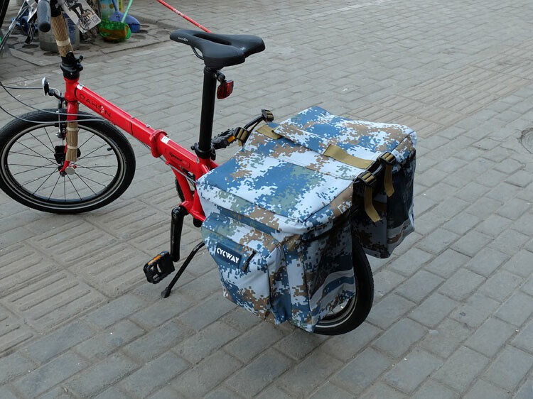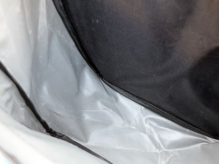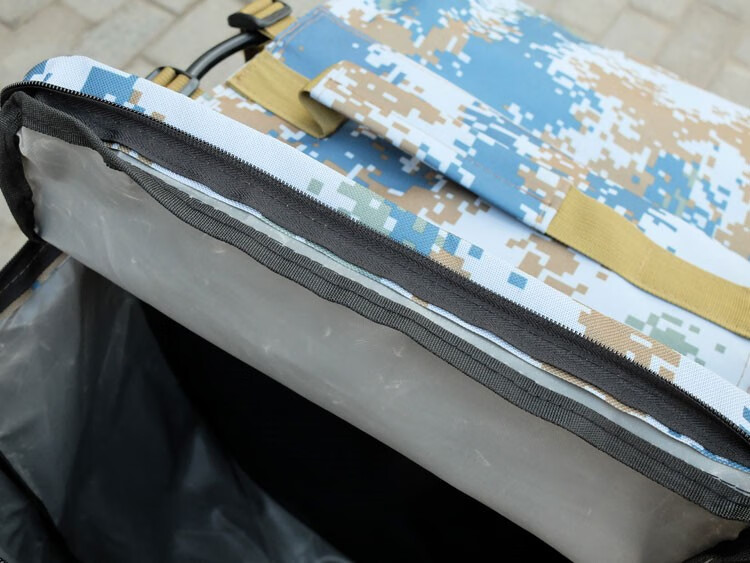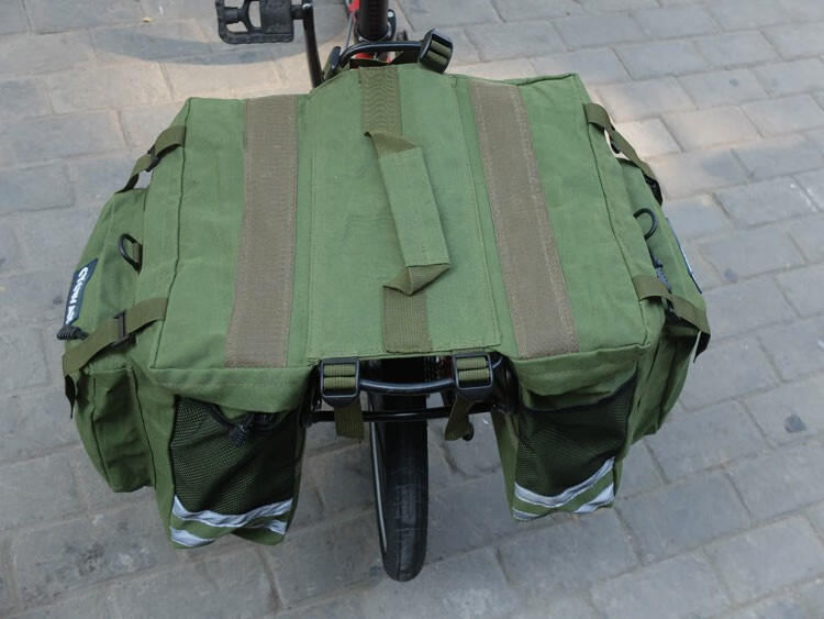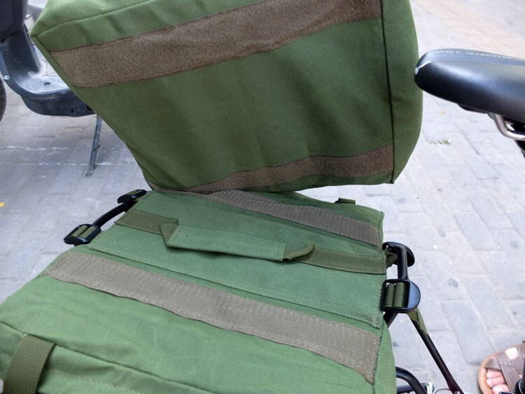 大号侧包约高33厘米,宽30厘米,厚19厘米,中间连接部分约16厘米宽,总容量40L左右。