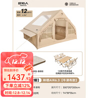 原始人 帐篷户外充气棉布帐篷 野外露营加厚多人超大空间露营装备 天窗烟囱口款+加宽气垫+一桌四椅