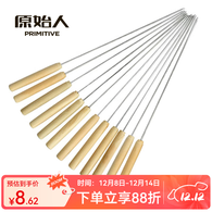 原始人 木柄防烫手烤肉签子烧烤签 烧烤工具烧烤配件 12只装