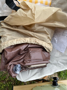 看到这款充气床垫还可以 和帐篷大小觉得合适 实际上充气后觉得稍微大了一点 每次那个充气和排气的只能用一次 比较麻烦 气不是很好排 睡上比较冷 还是要放棉被或蛋巢垫