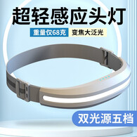 哈拿 强光感应头灯超长续航户外赶海野钓头戴超轻LED钓鱼照明灯 哑灰色HN-LX300条形不感应头灯