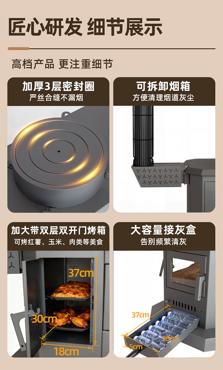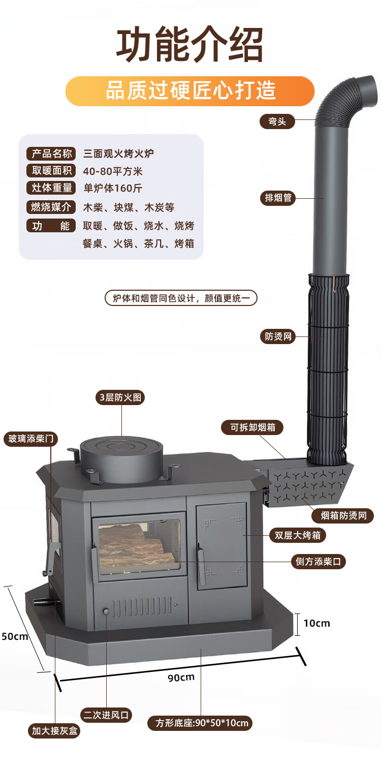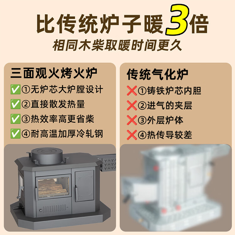 加厚炉体看着就结实,碳钢桌面亮堂堂的,跟我家实木家具特搭,显档次。冬天晚上点着,三面真火扑闪着,比看电视剧还解压;取暖快得很,进门开炉子,换件衣服的功夫,客厅就暖和了,再也不用裹着羽绒服看电视了。