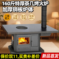 满钵取暖炉柴火灶烤火炉柴煤两用多功能回风炉室内无烟农村家用 0.8米 不锈钢单桌面 煤炉