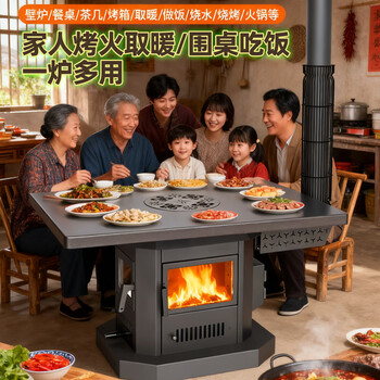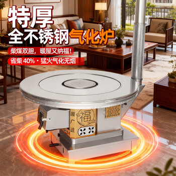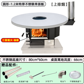 璞灶旺冬季柴火灶加厚加高农村取暖炉烧柴家用节能柴煤两用多功能回风炉 1米圆桌不锈钢(柴火炉)