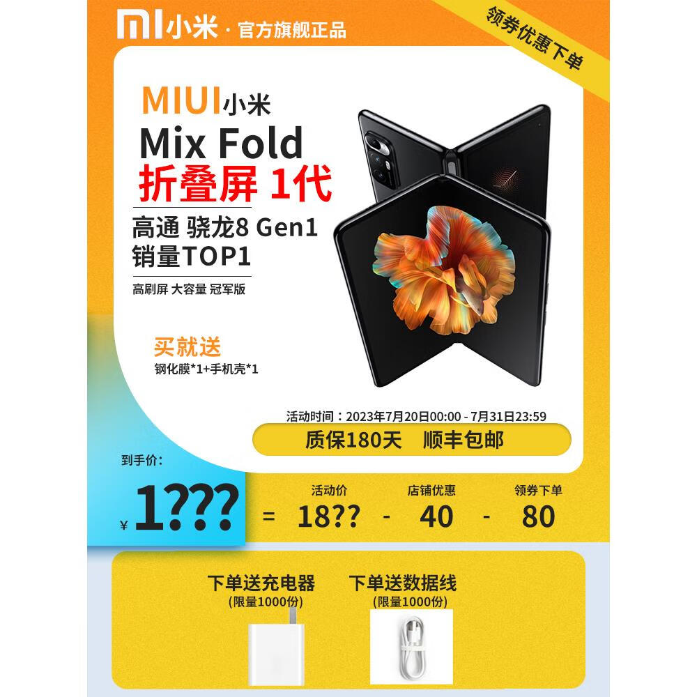 MI小米 MIX FOLD 5G 折叠屏手机 骁龙 888 一亿像素液态镜头 67W 快充 正品赠运费险详情咨询客服 黑色 12GB+256GB