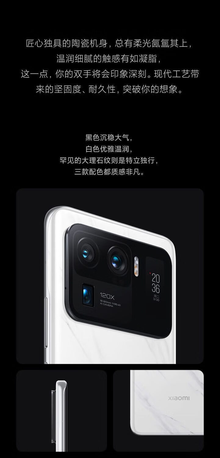 小米旗舰MIUI/ 11 Ultra 骁龙8885G版大理石陶瓷版Pro120变焦 陶瓷白 环保版无充电器8+256GB